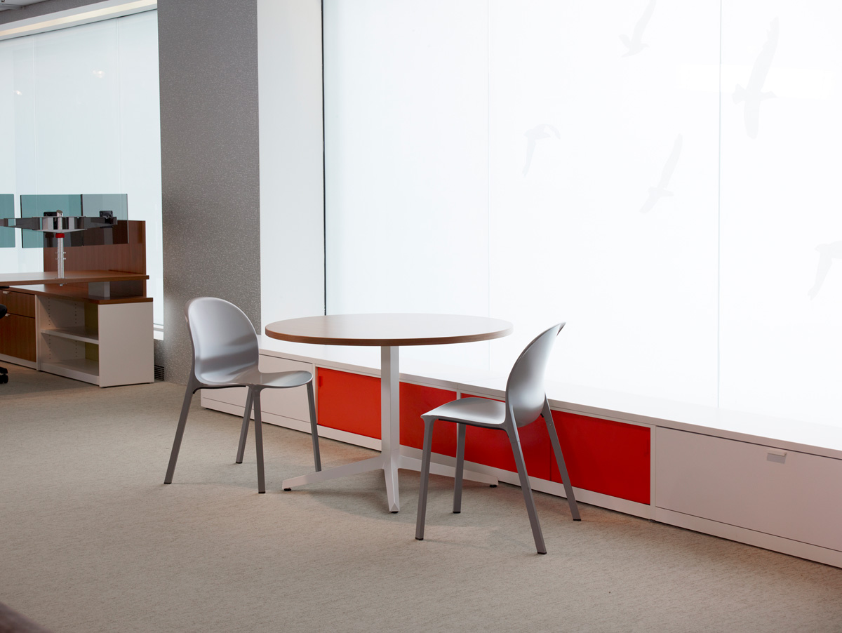 Jonathan Olivares’ meticulously executed design brings a refined sculptural presence to indoor and outdoor environments alike. The gracefully contoured form is carefully shaped to offer maximum comfort and the die cast aluminum shell is available in a palette of bright, contemporary colors.