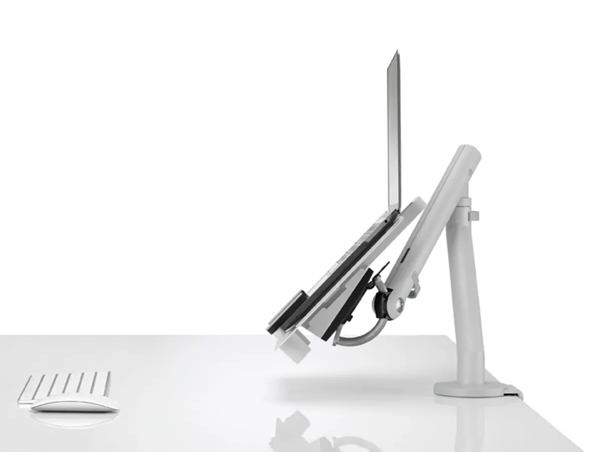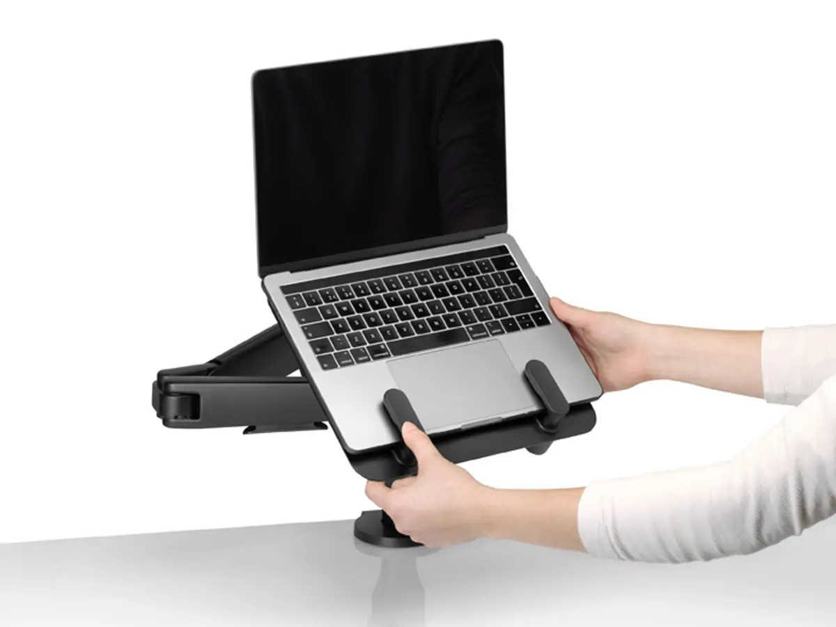 When combined with the Ollin Monitor Arm or Flo Monitor Arm (which requires an additional weight plate), the mount makes your laptop into a more useful tool because you can position it where it’s most comfortable for viewing.