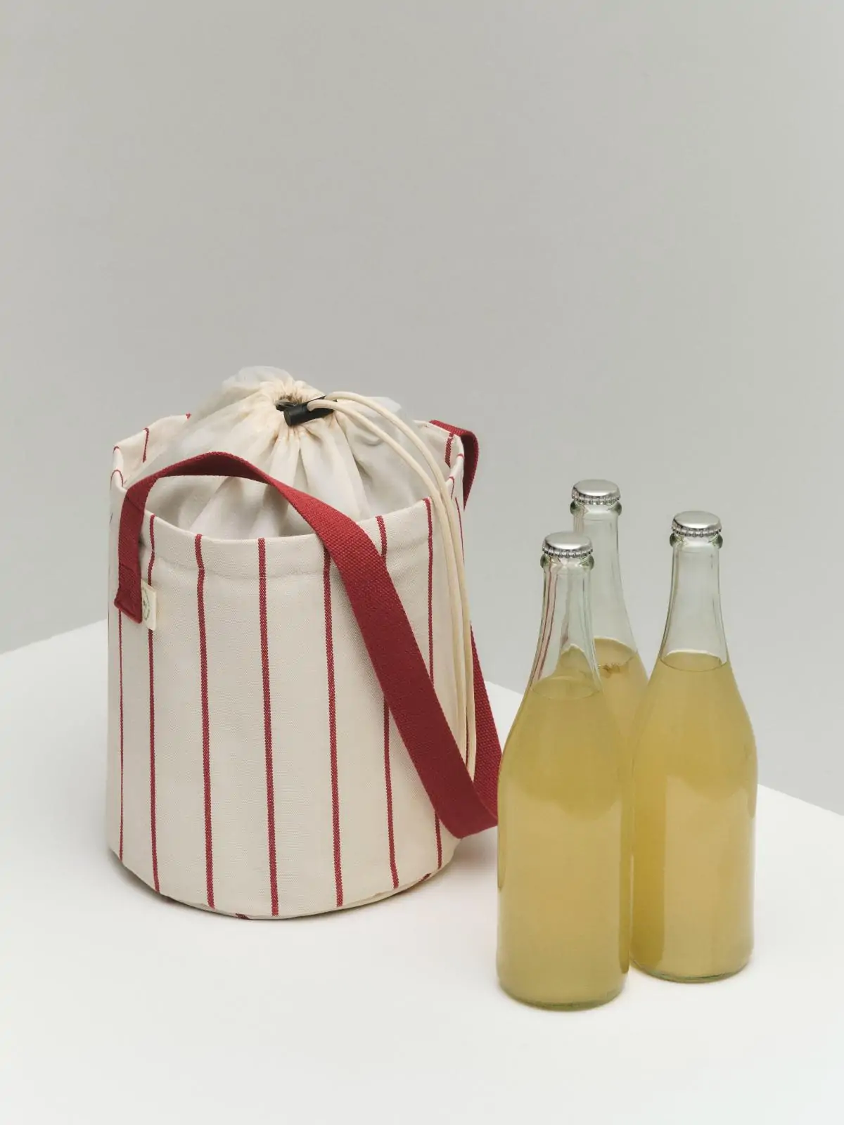 Part of the HAY Outdoor Market by Jasper Morrison Shop, the Outdoor Market Bottle Bag features an insulated compartment to keep bottles of water and other drinks cold in any outdoor setting. Crafted from recycled polyester with a drawstring closure and handle for convenient carrying, it is ideal for outdoor activities such as picnics, hiking, and beach days.