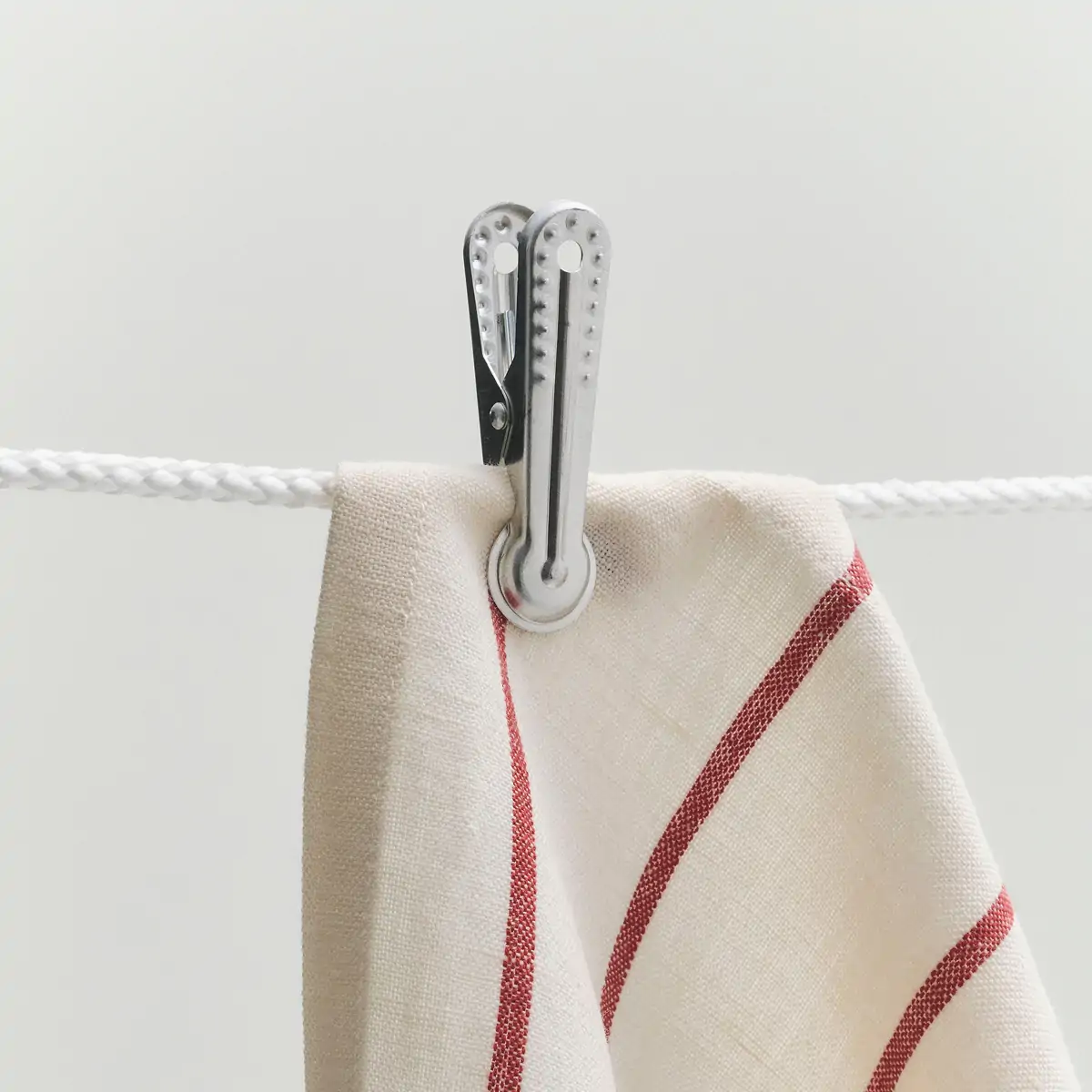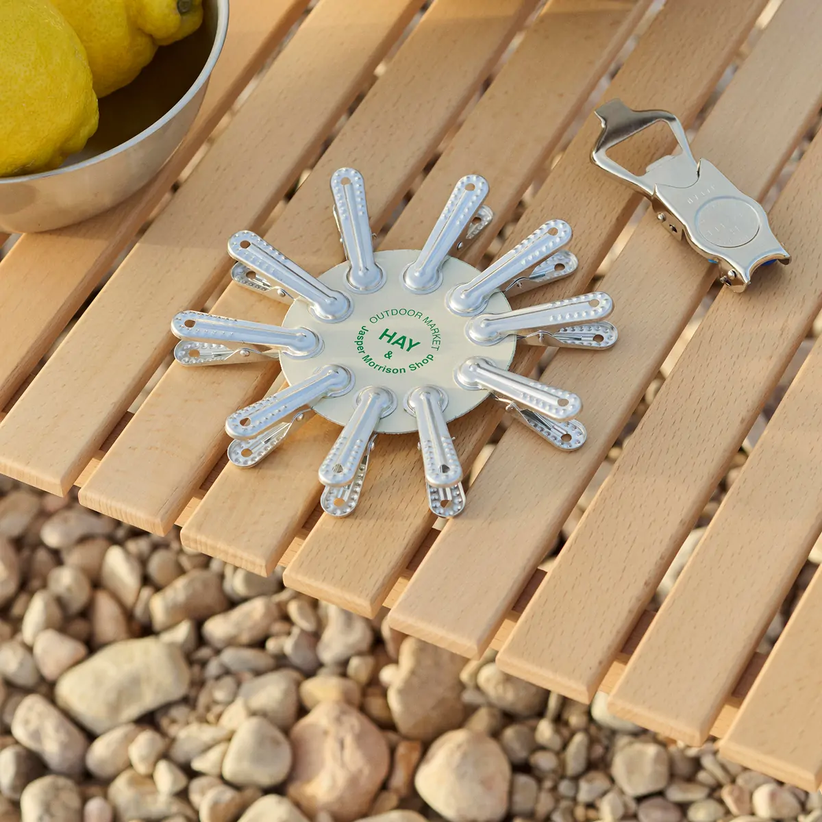 Part of the HAY Outdoor Market by Jasper Morrison Shop, the Outdoor Market Peg is a versatile aluminium clip for indoor and outdoor use. Ideal for securing tablecloths, hanging laundry, or sealing bags, it functions as a useful clamping device for a wide range of everyday objects.