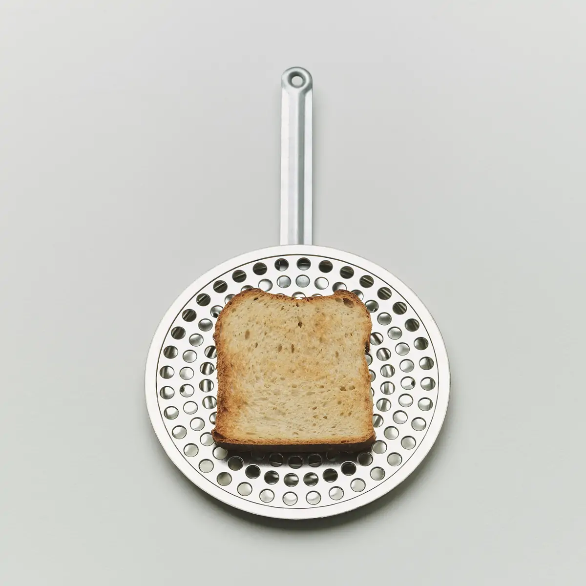 As part of the HAY Outdoor Market by Jasper Morrison Shop, the Outdoor Market Toaster Pan is designed for outdoor living with a focus on durability and functionality. Crafted from tinplate, the perforated surface allows even heat distribution, making it suitable for toasting bread over a camping stove or other controlled heat sources.