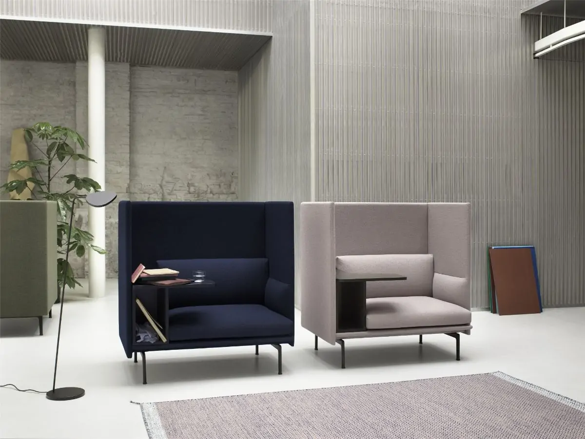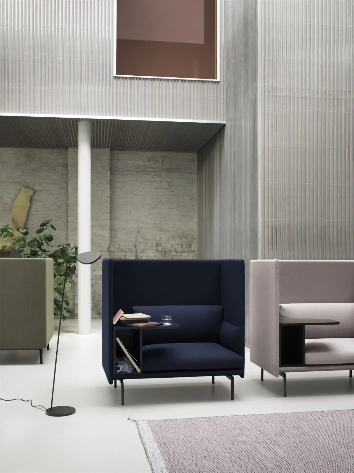 The Outline Highback Sofa combines the soft, deep seat and clean refined lines of Outline with a highback element, allowing for the design to create private spheres within bigger spaces and provide shelter for conversation and collaboration. The design has a timeless yet modern expression that makes it an ideal fit in any open-plan space, hospitality setting, workplace or public area.