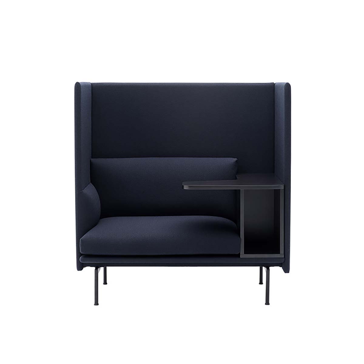 The Outline Highback Work combines the soft, deep seat and clean refined lines of the Outline series with a highback element and functional elements, allowing for the design to create an acoustic and spatial shelter to work and focus on the given task at hand.