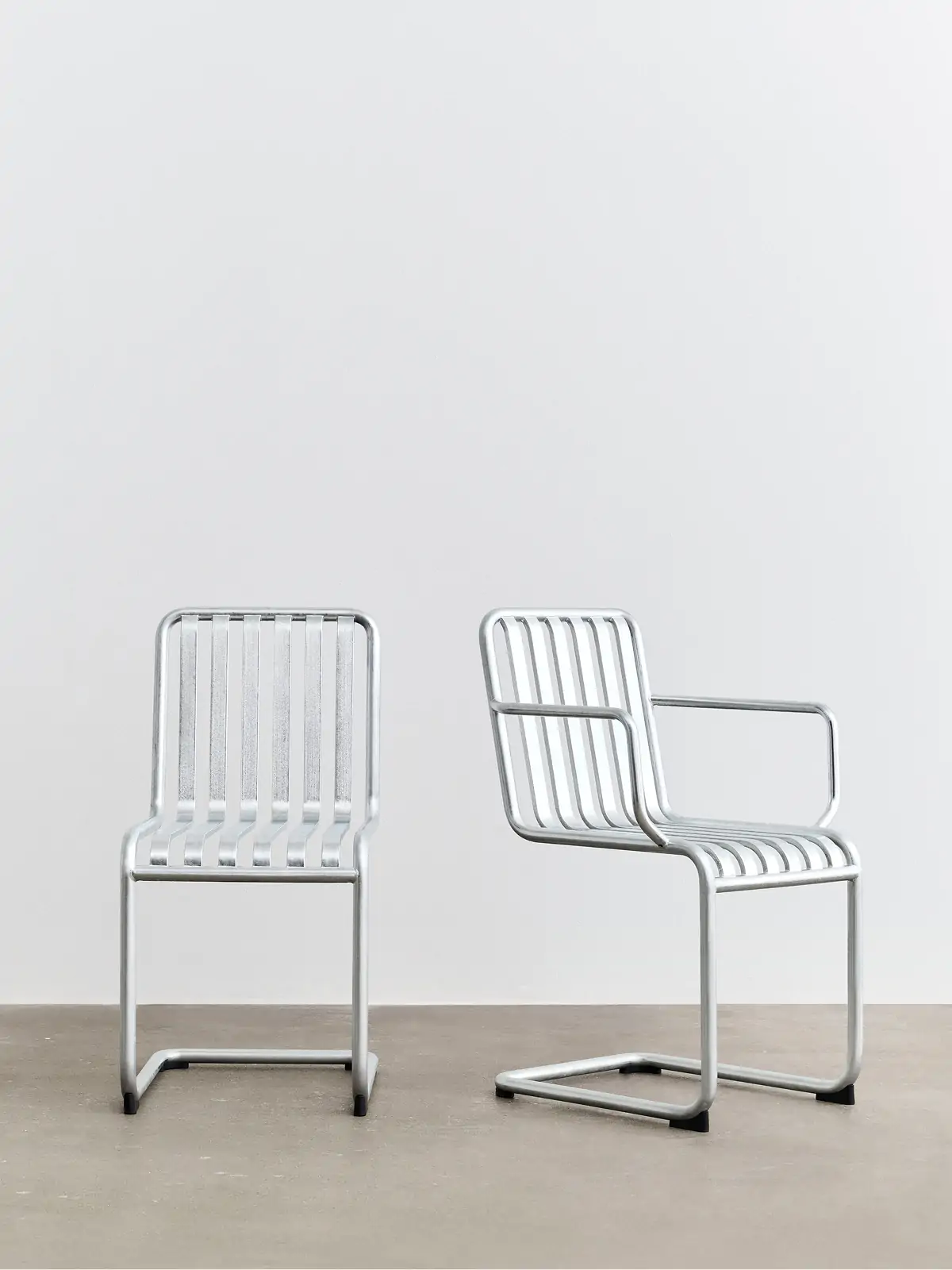Retaining the original’s symmetrical design language, the Palissade Cantilever Chair offers a lighter expression of the iconic outdoor range, bringing a fresh perspective while preserving its timeless appeal. The floating frame creates an airy, elegant aesthetic, with a subtle flex that provides comfort through a gentle spring-like feel. Designed to integrate effortlessly into a natural landscape or urban setting, the Palissade Cantilever Chair is ideal for relaxing, dining, and socialising across a variety of outdoor spaces.
