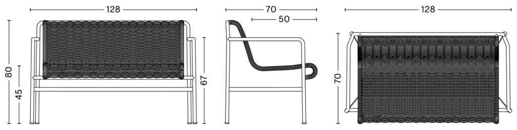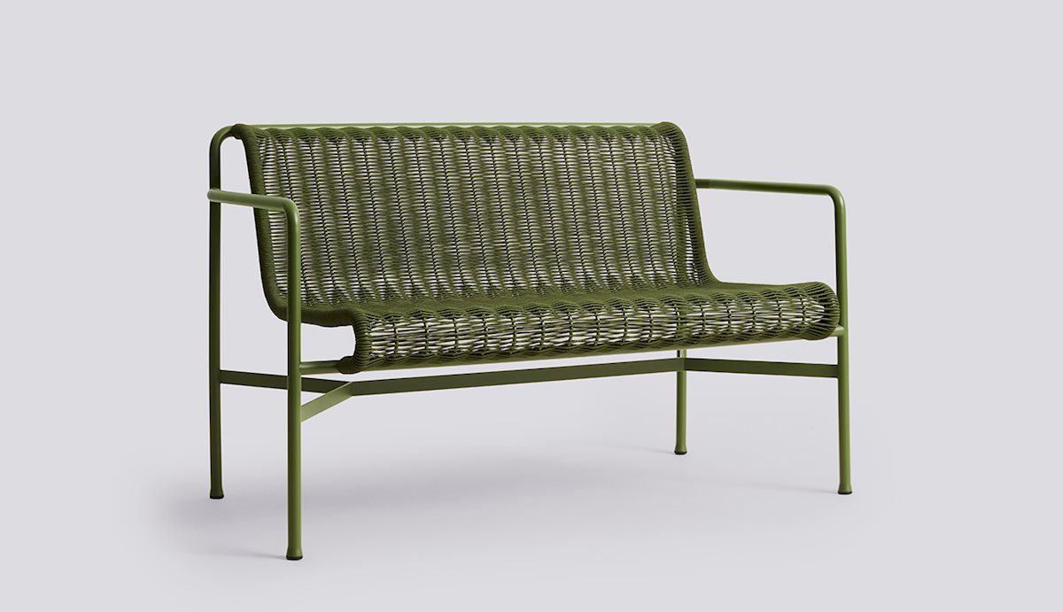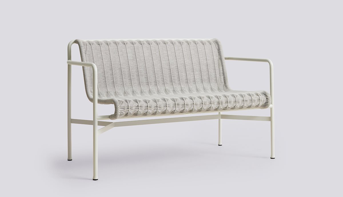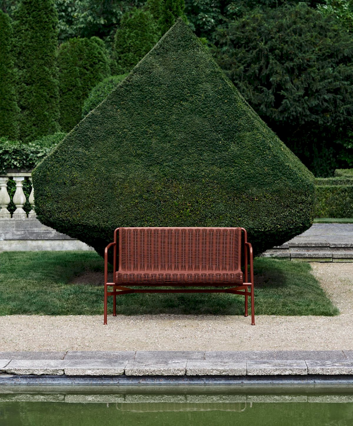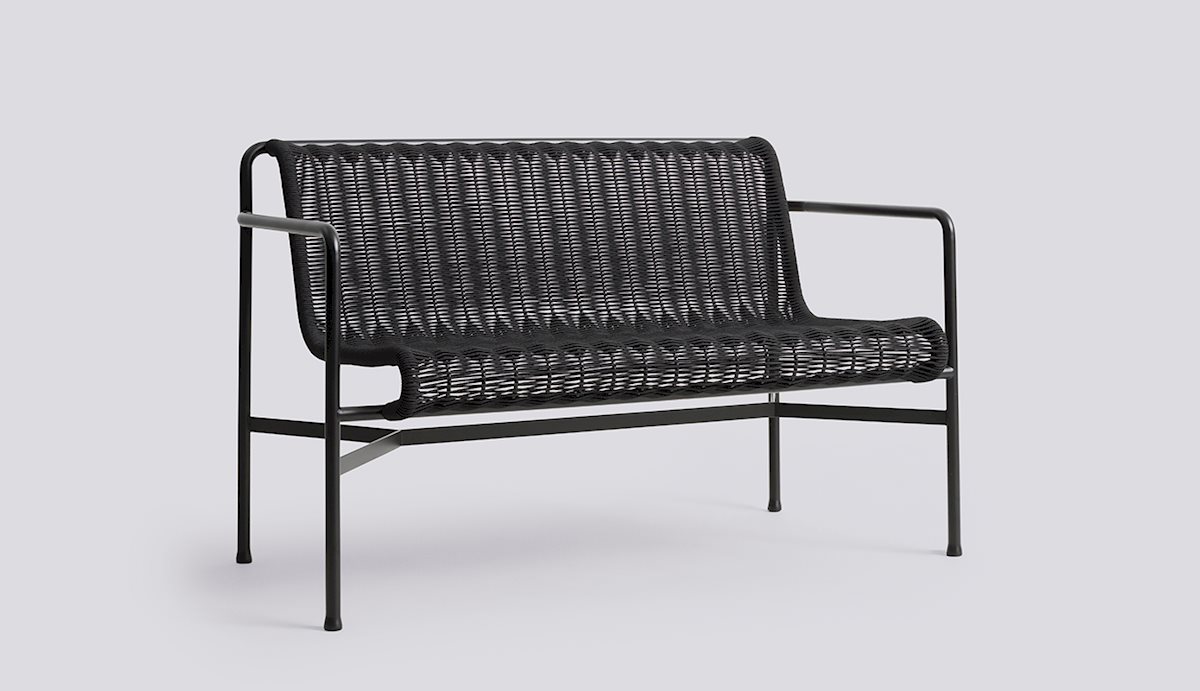 The Palissade Outdoor Collection from HAY is a study in contrasts, combining visual simplicity with core strength. Constructed from powder-coated steel and handwoven, recycled polyester cord, the Palissade Cord Dining Bench is designed in both color and form to integrate effortlessly into natural landscapes or urban settings. Engineered for all-weather resilience, it ensures lasting durability in any outdoor setting and fixation brackets are available for additional security needs. Weather-proof covers are also available to keep it looking its best when not in use.