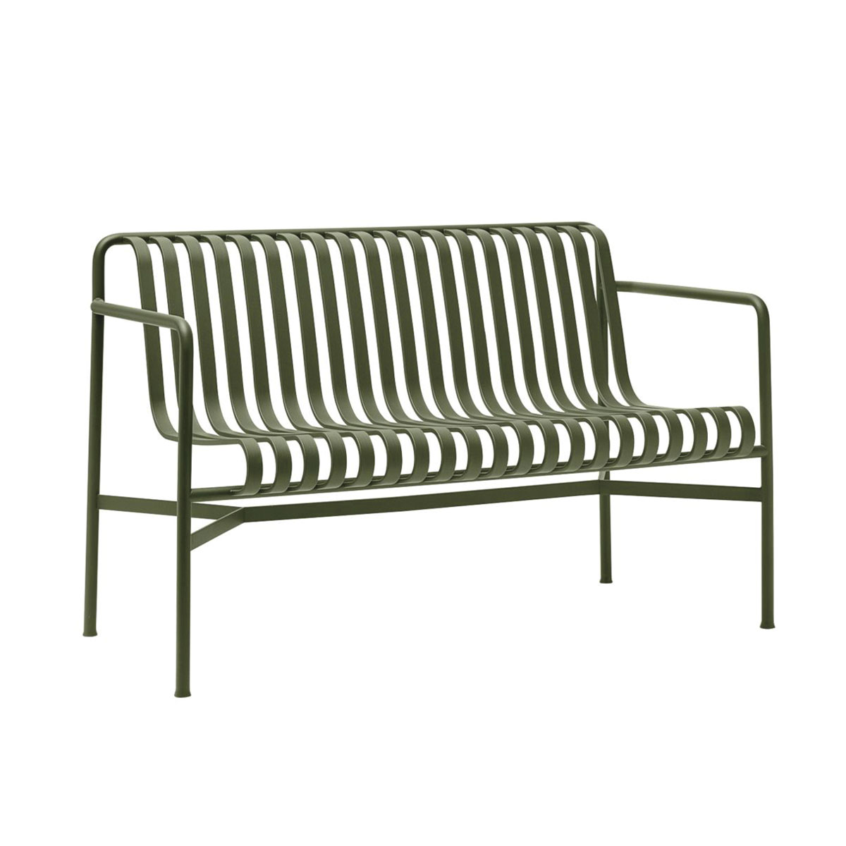 The Palissade Outdoor Collection from HAY is a study in contrasts, combining visual simplicity with core strength. Constructed from powder-coated steel, the Palissade Dining Bench is designed in both color and form to integrate effortlessly into natural landscapes or urban settings. Engineered for all-weather resilience, it ensures lasting durability in any outdoor setting, making it ideal for outdoor office spaces and hospitality environments. Optional cushions provide added comfort and enhance the overall aesthetic, while fixation brackets provide peace of mind.