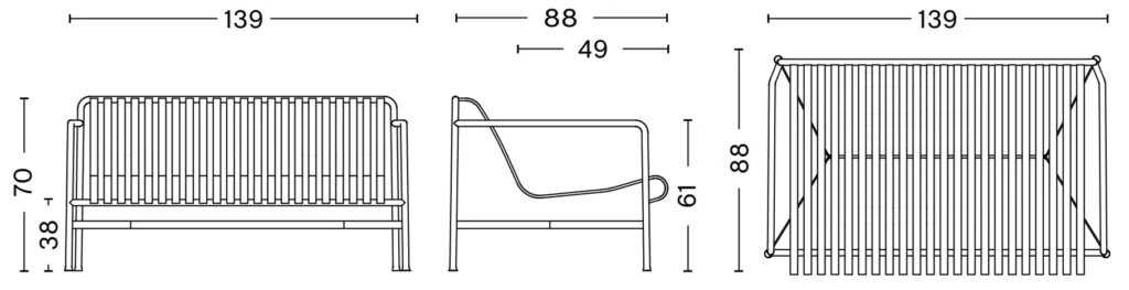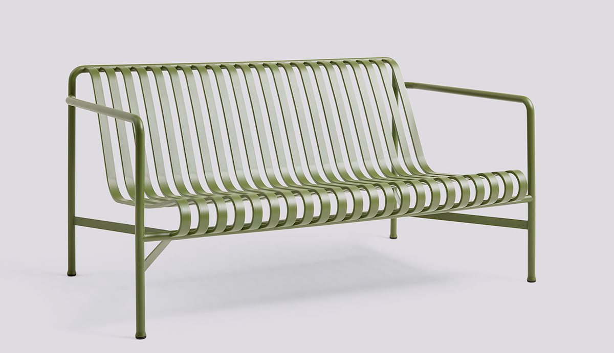 The Palissade Outdoor Collection from HAY is a study in contrasts, combining visual simplicity with core strength. Constructed from powder-coated steel, the Palissade Lounge Sofa is designed in both color and form to integrate effortlessly into natural landscapes or urban settings. Engineered for all-weather resilience, it ensures lasting durability in any outdoor setting, making it ideal for outdoor office spaces and hospitality environments. Optional cushions provide added comfort, while fixation brackets provide peace of mind.