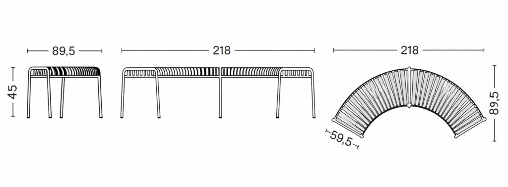 The Palissade Outdoor Collection from HAY is a study in contrasts, combining visual simplicity with core strength. Constructed from powder-coated steel, the Palissade Park Bench is a backless bench with a curved frame that allows for flexible seating arrangements, from circles to arcs, making it perfect for social gatherings or group collaboration. Engineered for all-weather resilience, it ensures lasting durability in any outdoor setting, making it ideal for outdoor office spaces and hospitality environments. Optional cushions provide added comfort, while fixation brackets provide peace of mind.