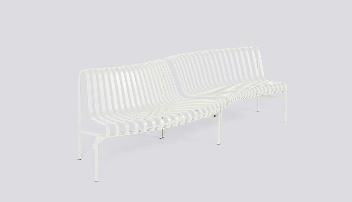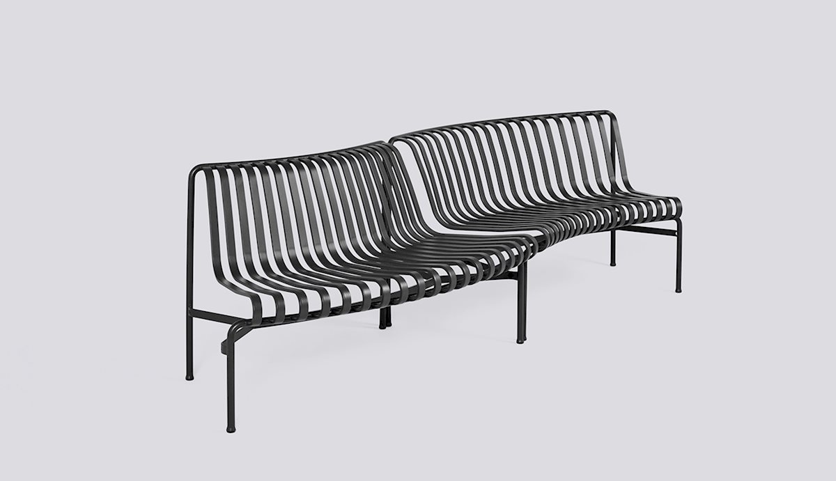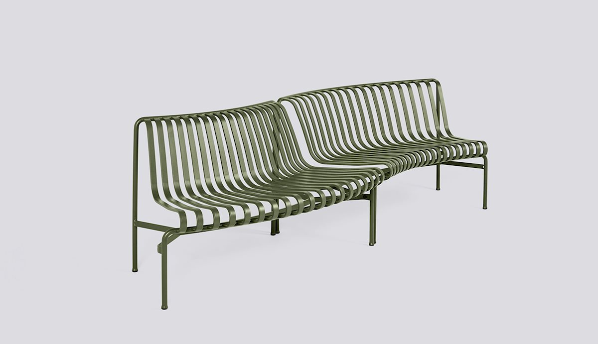 The Palissade Outdoor Collection from HAY is a study in contrasts, combining visual simplicity with core strength. Constructed from powder-coated steel, the Palissade Park Dining Bench features a supportive, sloping back and a curved frame that allows for flexible seating arrangements, from circles to arcs, making it perfect for social gatherings or group collaboration. Engineered for all-weather resilience, it ensures lasting durability in any outdoor setting, making it ideal for outdoor office spaces and hospitality environments. Optional cushions provide added comfort, while fixation brackets provide peace of mind.