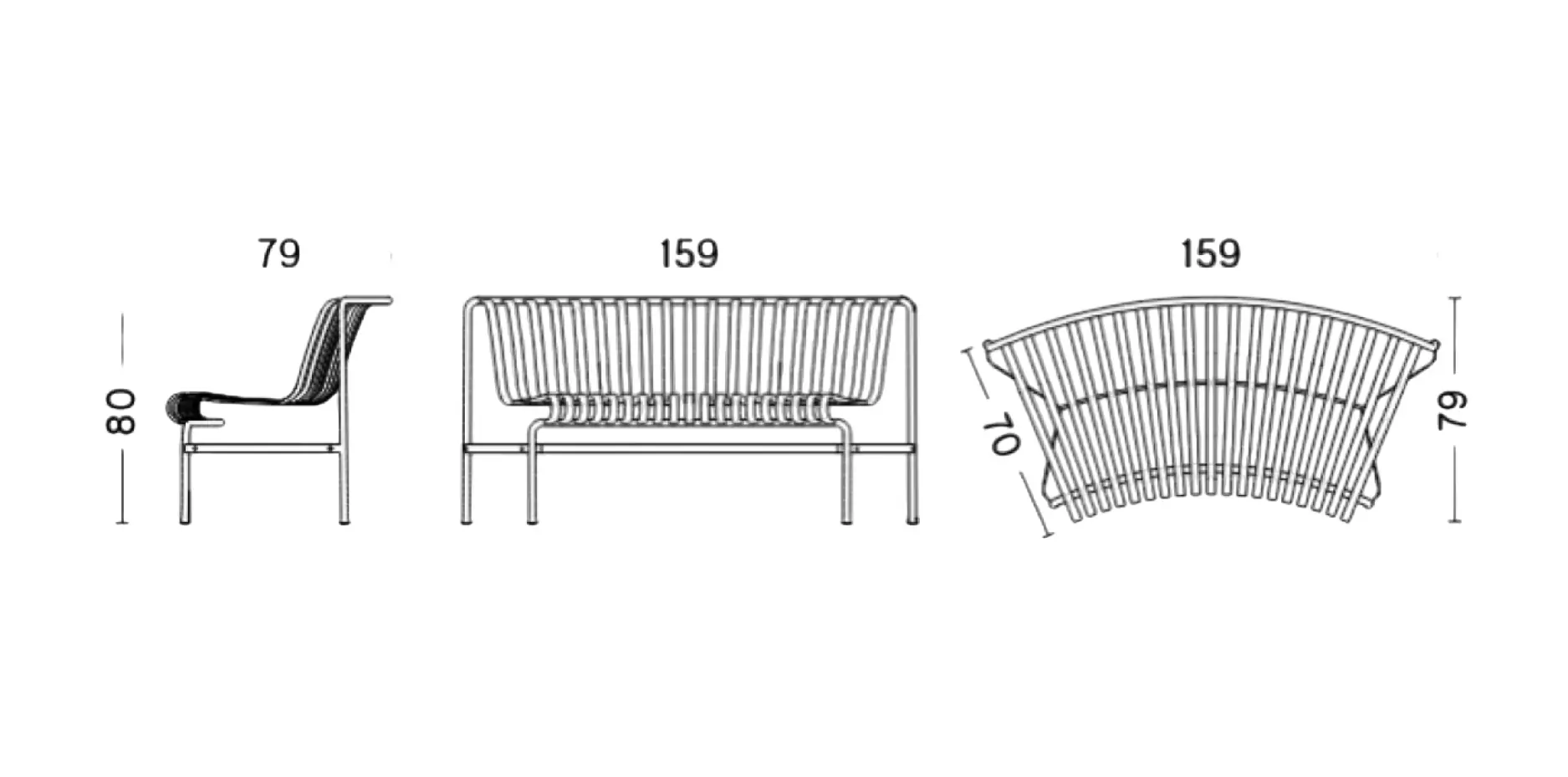 The Palissade Outdoor Collection from HAY is a study in contrasts, combining visual simplicity with core strength. Constructed from powder-coated steel, the Palissade Park Dining Bench features a supportive, sloping back and a curved frame that allows for flexible seating arrangements, from circles to arcs, making it perfect for social gatherings or group collaboration. Engineered for all-weather resilience, it ensures lasting durability in any outdoor setting, making it ideal for outdoor office spaces and hospitality environments. Optional cushions provide added comfort, while fixation brackets provide peace of mind.