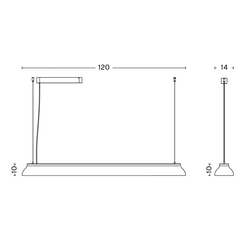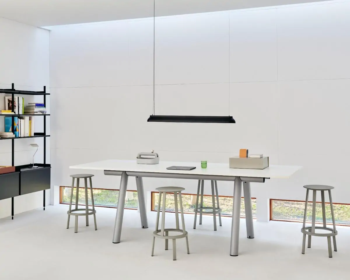 Pierre Charpin’s PC Linear shares the same simple and elegant profile that is present in the rest of the family. The PC Linear’s shade is pressed from a single aluminium component with a wet-sprayed finish. The linear design is ideal for suspending over meeting or dining tables, as well as for illuminating exhibition shelves in commercial spaces.
