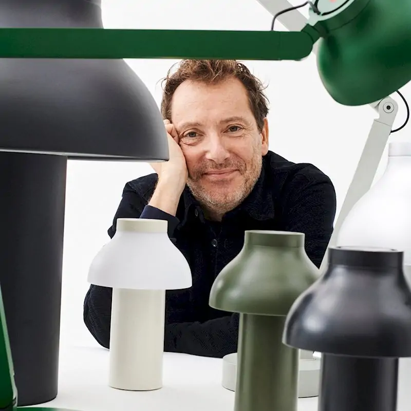 Trained as an artist, Pierre Charpin has devoted himself to furniture and object design since the early 1990s. His approach to design is strongly influenced by his artistic background. Pierre’s research on form and color characterize his work and can be seen in both, limited edition products and industrial products like the PC lamp. The use of a simple vocabulary and elementary forms is a constant aspect in his work, as well as the desire to offer sensual objects. Drawing, which he practices as a starting point for his designs, is an essential part of his creative process. Pierre Charpin’s pieces have been included in exhibitions around the world and are held in many museum collections. He was elected Designer of the Year 2017 at Maison & Objet. He lives and works in Paris. For HAY, Pierre Charpin has designed the PC Collection.