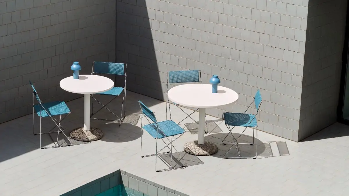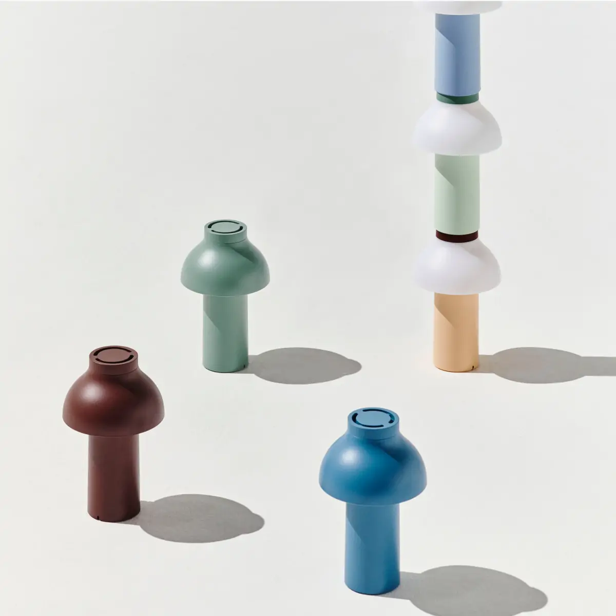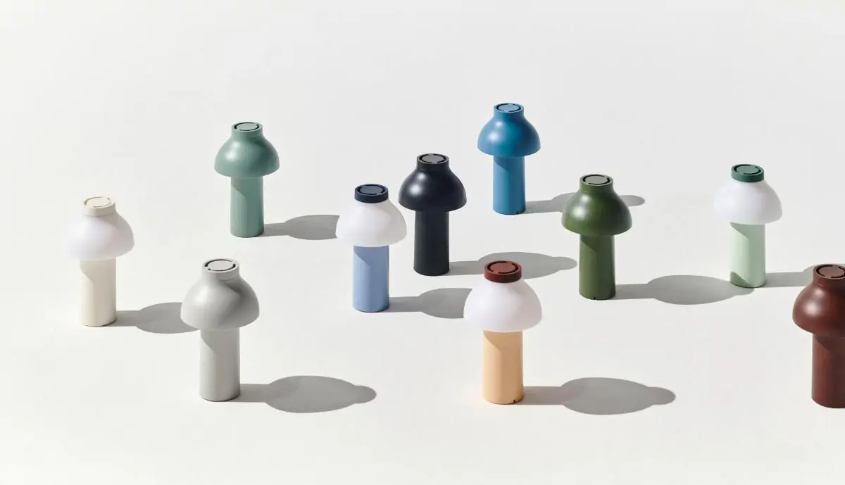 Pierre Charpin’s PC Portable Lamp is a refined, portable lamp for indoor and outdoor use. The lamp body and shade are made from 95% post-consumer recycled plastic with a matte scratch- and water- resistant finish, with a battery-powered design that gives the freedom and flexibility to move it anywhere. The concealed light source has a dimmable feature, offering users the possibility to select directional downlight or ambient light options. Available in versatile mono-colour designs or selected duo-tone combinations, the PC Portable Lamp is ideal for table lighting in numerous domestic environments, as well as at cafés, restaurants, and other public areas.