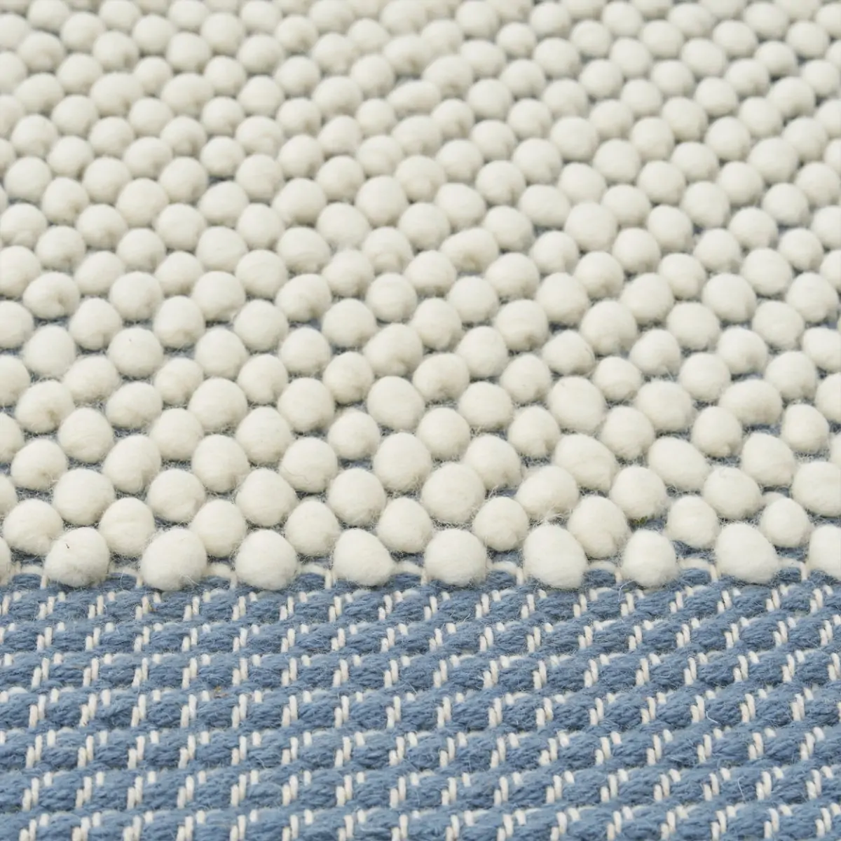 Pebble Rug has a diverse and tactile surface, inspired by the sensuous feeling of walking across a pebbled beach. Its handwoven structure contrasts the feel of its soft, woolen loops with a canvas base in a sturdier wool quality. Pebble Rug has a distinct and modern woven texture for any home, hospitality setting, lobby, hotel space or co-working area.