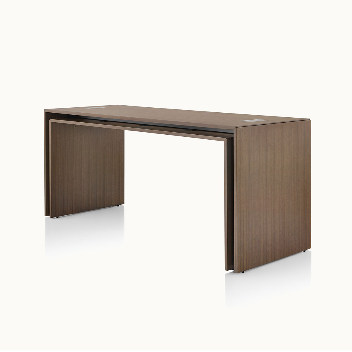 Peer Tables accommodate the increase in communal, multi-use workspaces at the office. The design encourages more casual styles of meeting, conversation, and co-creation that take place in collaborative settings. A shelf below the table surface provides convenient under-table power and data access. It also allows collaborators to keep phones and laptops close by while maximizing available tabletop space.