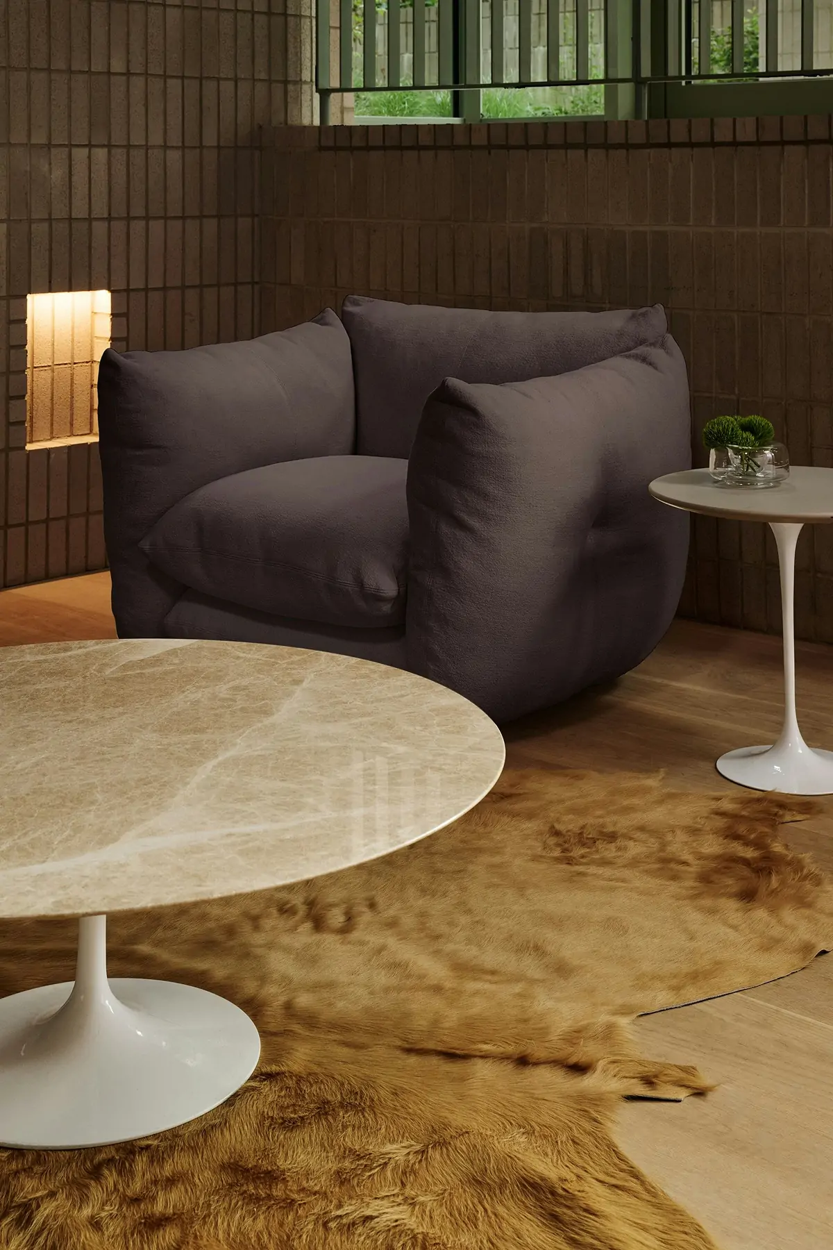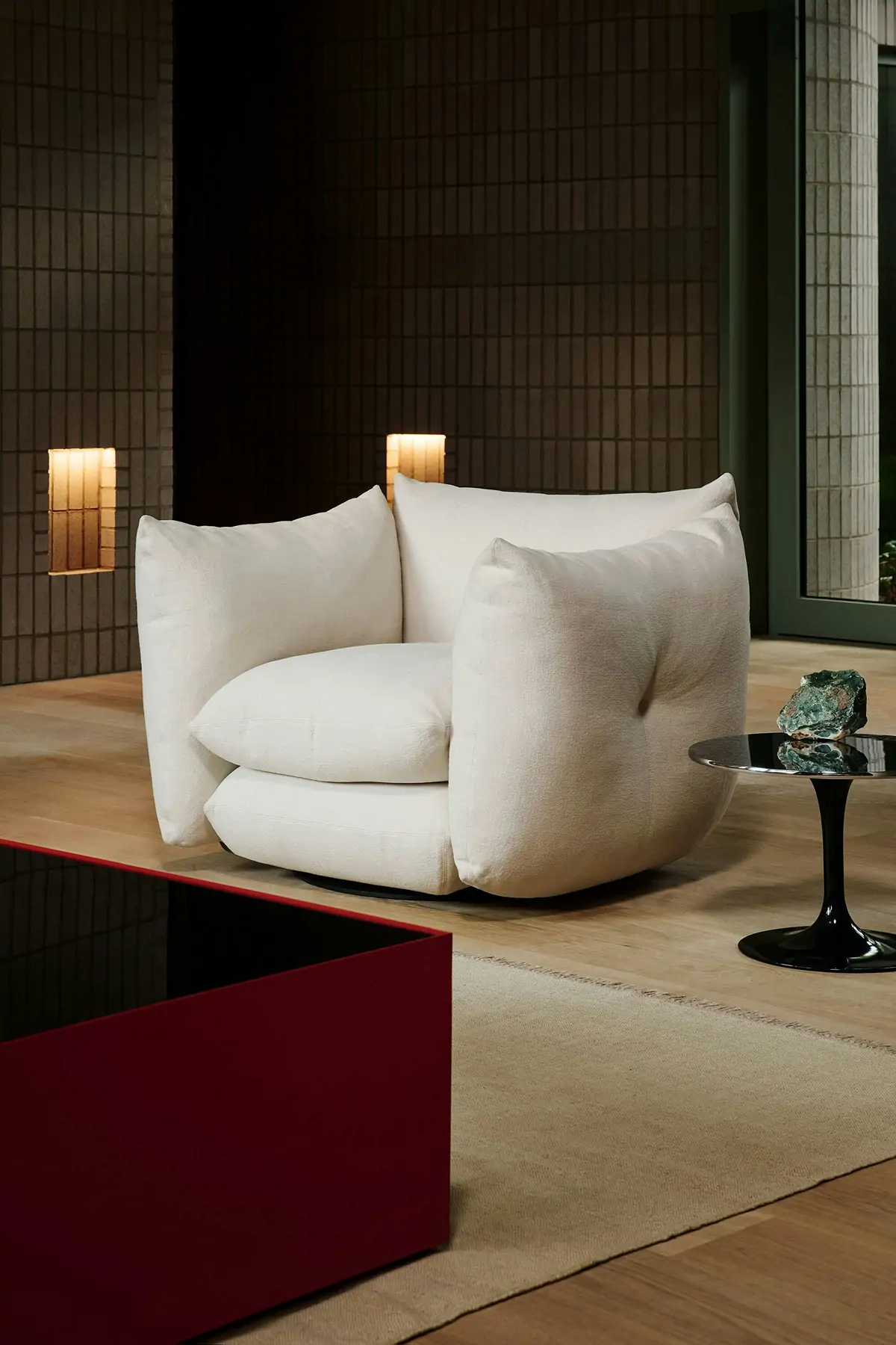 The form of the Perron Pillo Lounge Chair—an extension of the popular Perron Pillo Sofa—evokes curiosity, while its all-encompassing comfort feels familiar and welcoming.