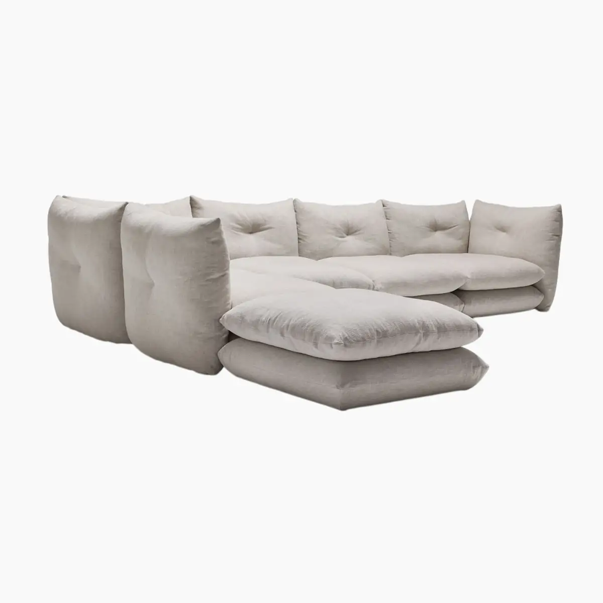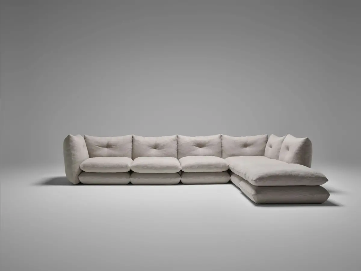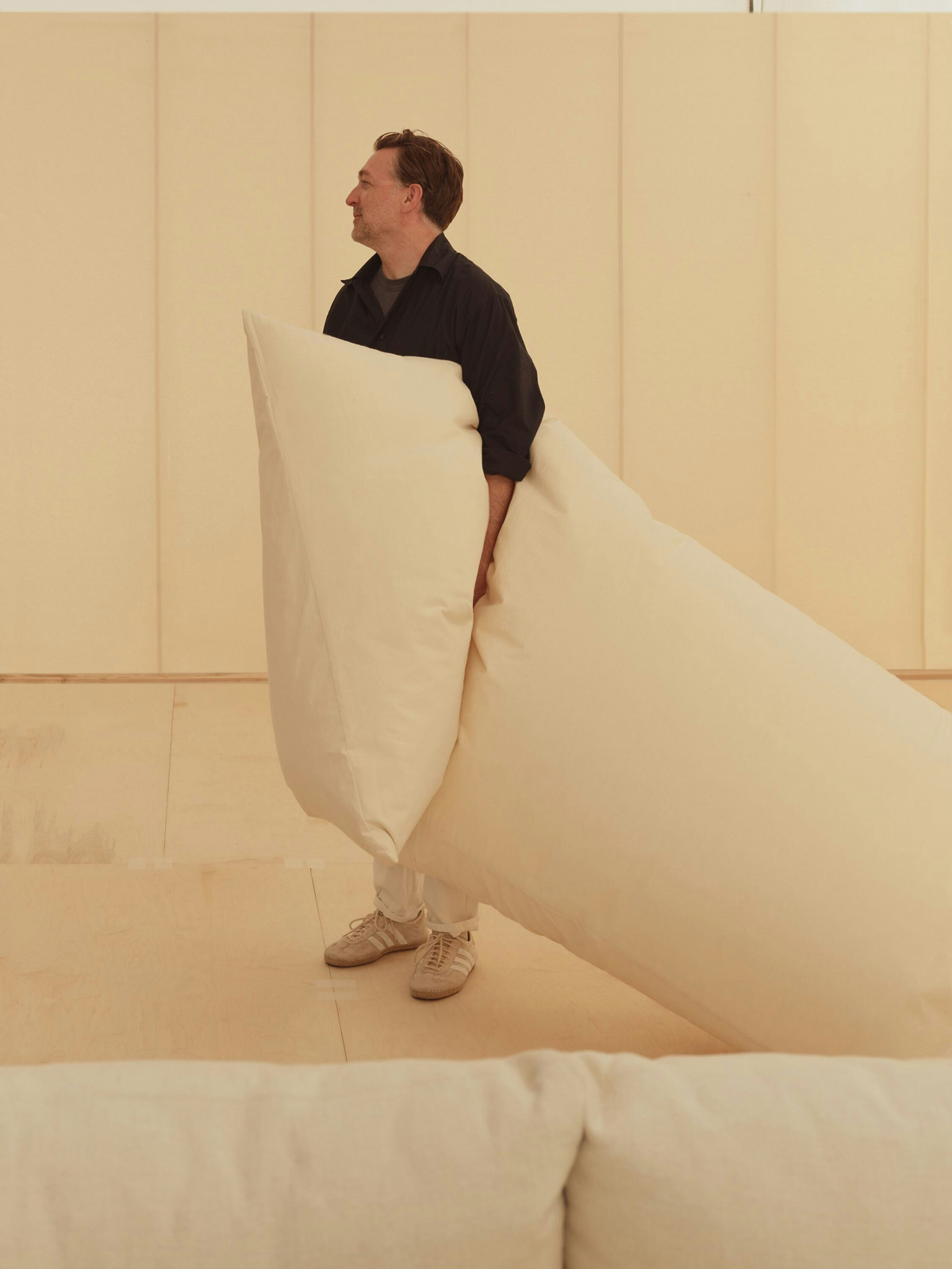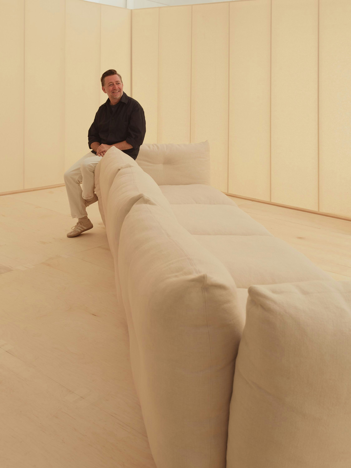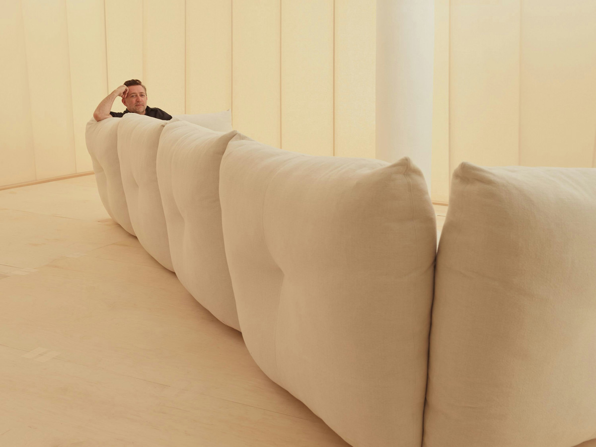 Willo Perron is a multidisciplinary designer who brings an unconventional twist to everything he creates, whether it’s a set design, retail rebranding, or residential interior. The same is true for his approach to furniture. His modular Pillo Sofa Collection is both intriguing and inviting. “I wanted to create this really simple, big gesture,” says Perron, “like a bunch of pillows stacked on top of each other.”