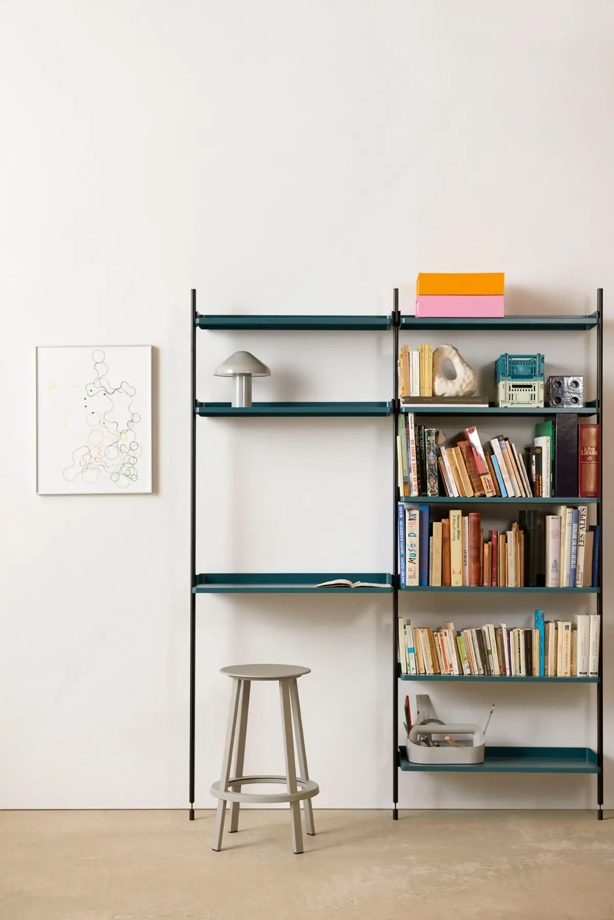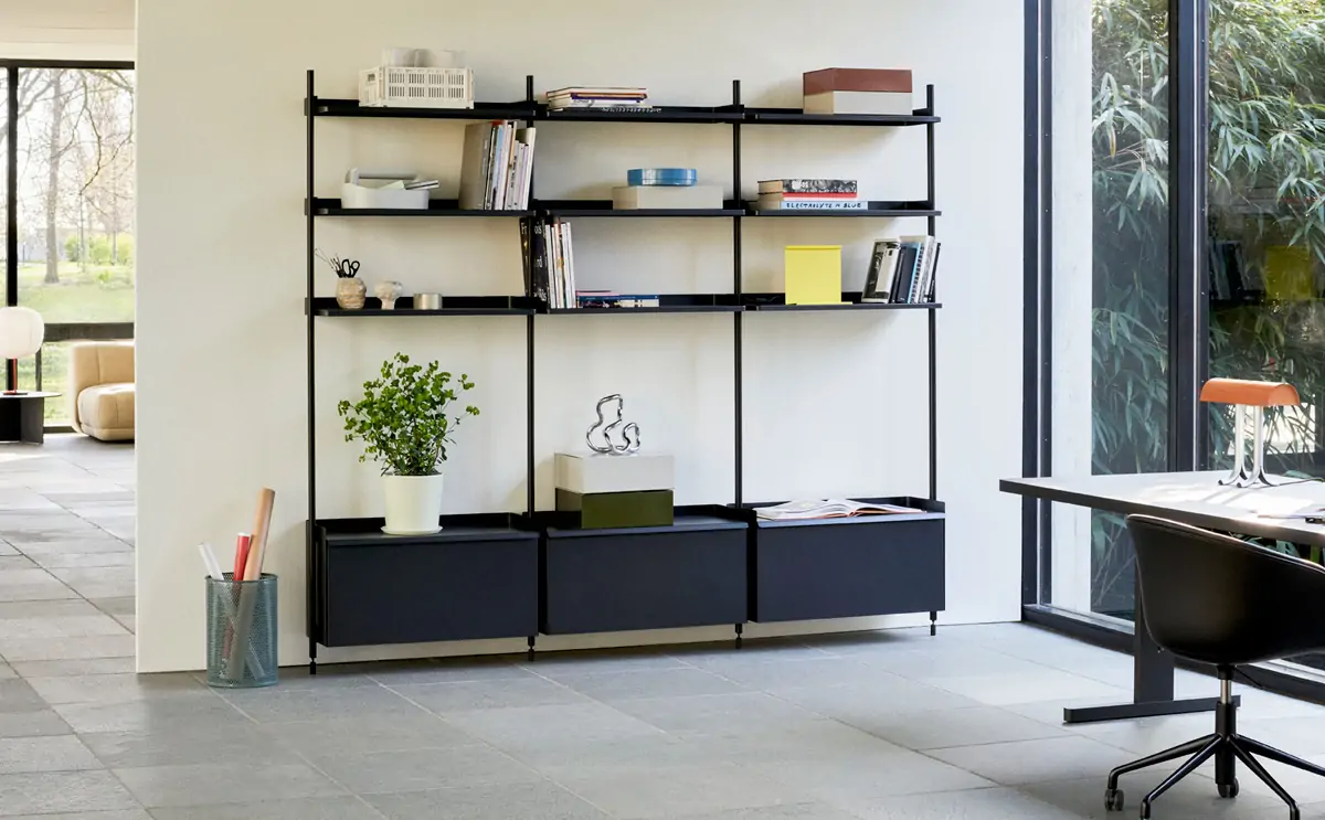 Designed by French designers Ronan & Erwan Bouroullec, Pier System is a multifunctional storage system developed to accommodate and adapt to modern lifestyle requirements. Featuring a flat-pack design that is easy to assemble, reconfigure and recycle, the simple construction provides a flexible shelving solution for organising and storing a multitude of items. Constructed from lightweight aluminium and steel using the minimum number of components required to create a complete storage system, Pier System is available in a variety of colours and set configurations that can be combined with each other. Elements that are part of these configurations can be moved around as needed and desired, enabling the user to incorporate work, wardrobe or organisational functions into most rooms and environments, from living rooms and bedrooms to entrance halls and office areas.