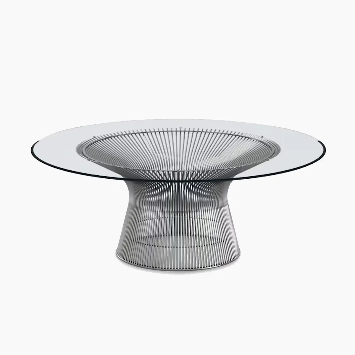 The iconic Platner Coffee Table from Knoll is crafted with meticulously welded, delicate but sturdy steel rods. Available in an array of finishes, including 18-karat gold, the airy frame is topped with your choice of glass, granite, marble, or wood for a sculptural silhouette perfect for offices, lounges, and lobbies.