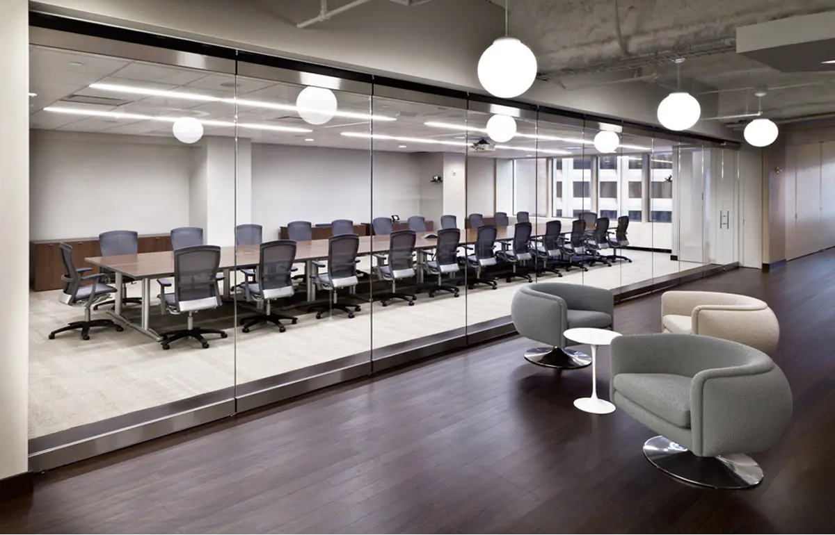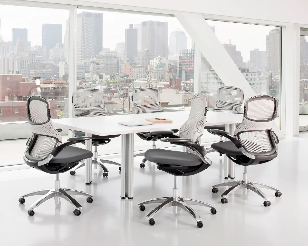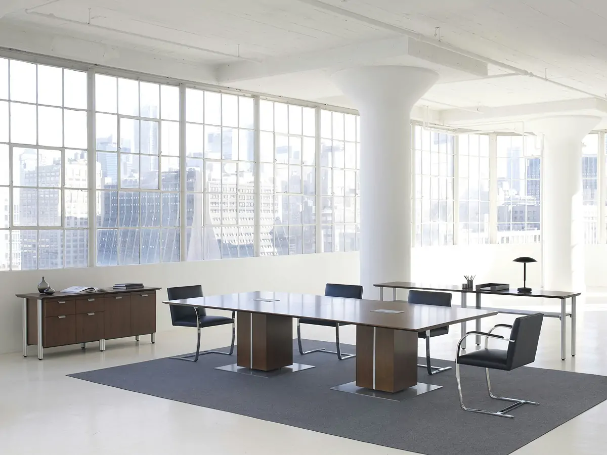 With a wide range of sizes, base options, and finishes, the Propeller Conference Table can easily be specified to complement a multitude of design aesthetics, ranging from clean and modern to rich and traditional. The modular design allows for configurations ranging from small to very large and the finish palette, which includes traditional veneers and contemporary metal options, brings a refined aesthetic to any conference room or meeting space.