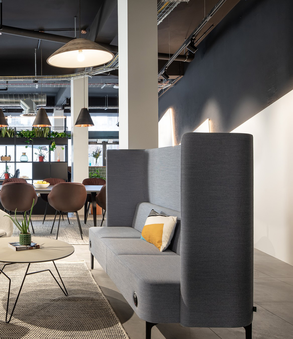 Available in two- and three-seater versions, the Pullman Sofa moves seamlessly between simple seating, meeting space and drop down work zone.
