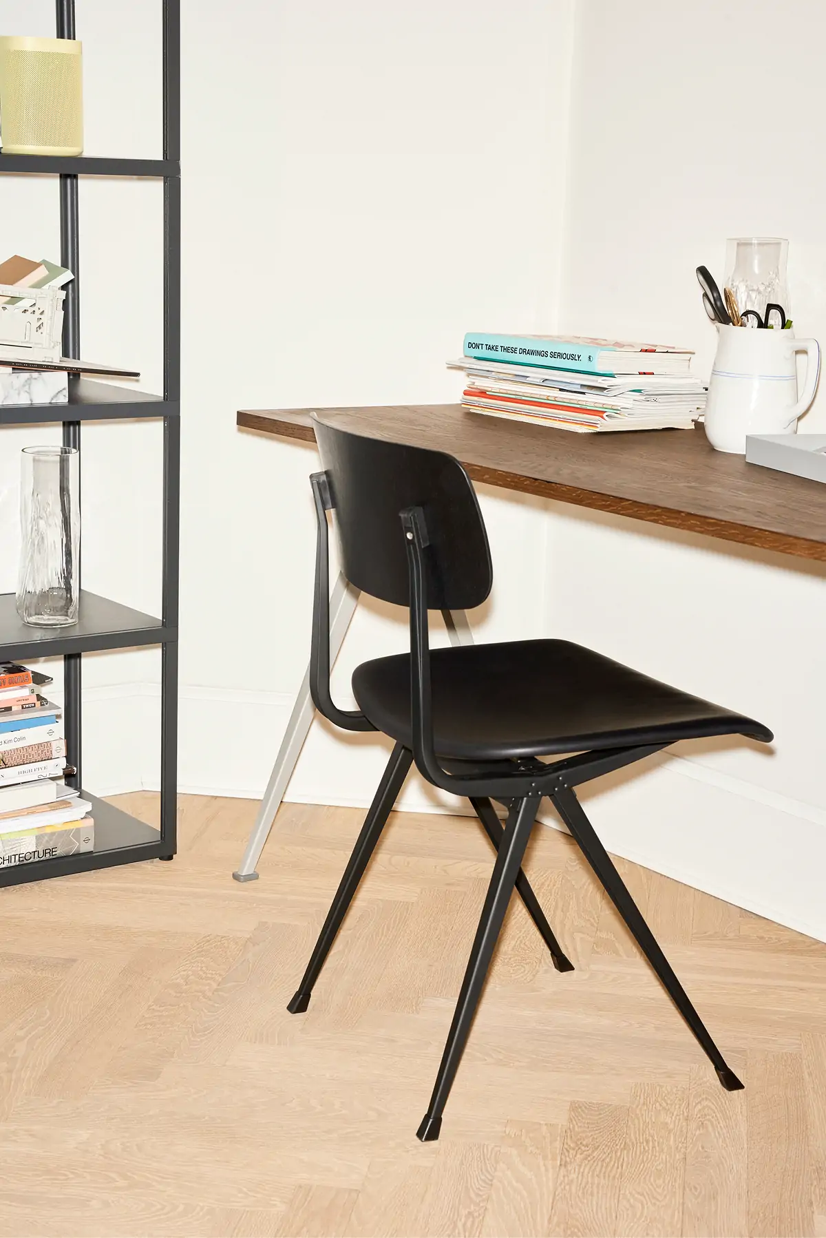 Dutch-born Wim Rietveld (1924-1985) was an industrial furniture designer. He studied Industrial Design at The Hague Academy in 1950, before becoming head of design at Gispen in 1953. In 1958, he started working at De Cirkel, a manufacturer of steel furniture that had merged with the Ahrend group in 1939. Here he met Friso Kramer, and together they developed a number of iconic design collaborations, including the Result Chair in 1958. Rietveld also designed the Pyramid Tables and Chairs for Ahrend in 1960. Rietveld was known for his functionalist chairs, tables and storage systems, but he also designed agricultural machinery, boats and trains. Alongside his design work, Wim Rietveld also lectured at the Royal Academy and the Technical University in Delft. Together with Ahrend, HAY has reproduced the Result Chair and Pyramid Collection.