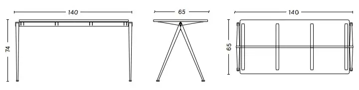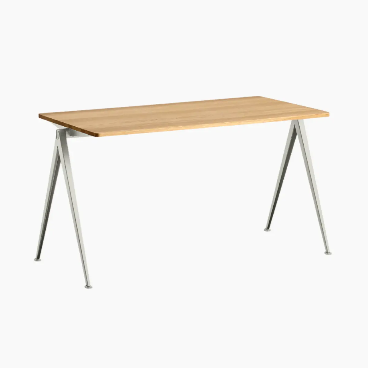 Designed to be functional, light and strong, the Pyramid Table features a steel-sheet base with a rectangular oak tabletop. Originally created by Wim Rietveld while working at Ahrend in the 1950s, the cutout steel collection has been relaunched by HAY together with Ahrend. The table comes in two models – with and without overhang – and is suitable for using in a wide range of educational institutions, corporate environments and private homes. Both variants are available in a variety of wood finishes and base colours that can be coordinated with the Result Chair and the Pyramid Bench.