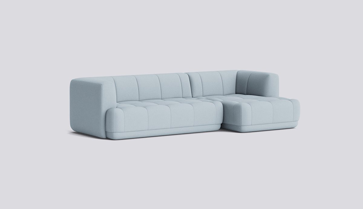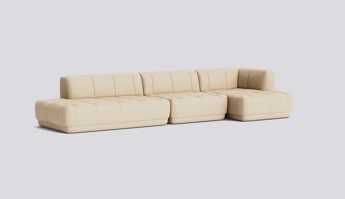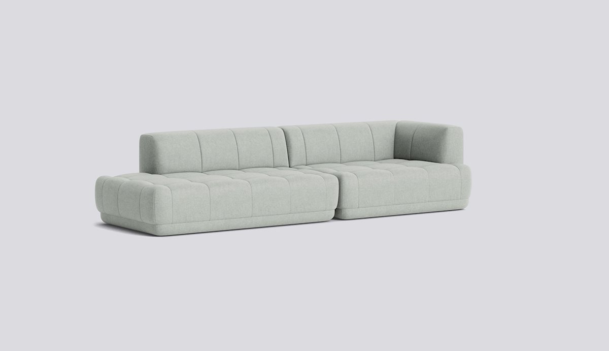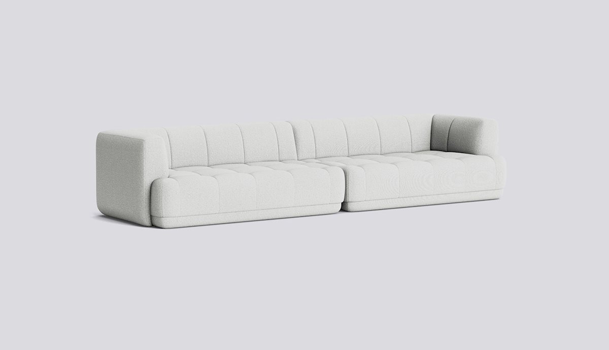 The Quilton Collection from HAY is a ‘quilted landscape sofa system,’ a versatile platform for living, working, socializing, and relaxing. The Quilton Sofa provides the flexibility of a modular sofa system with generous dimensions and sculpted forms. Its blind-tufted quilted upholstery adds a geometric visual reminiscent of the standard Chesterfield-style sofa while enhancing the comfort of the foam and wadding seats.