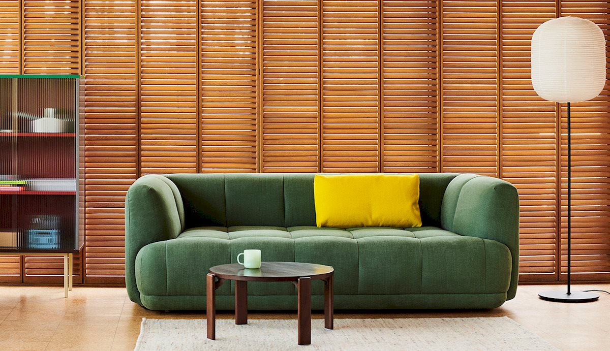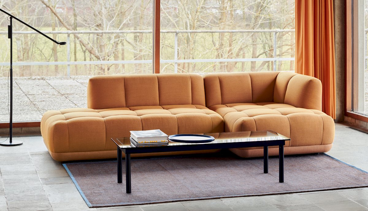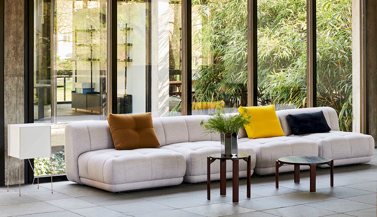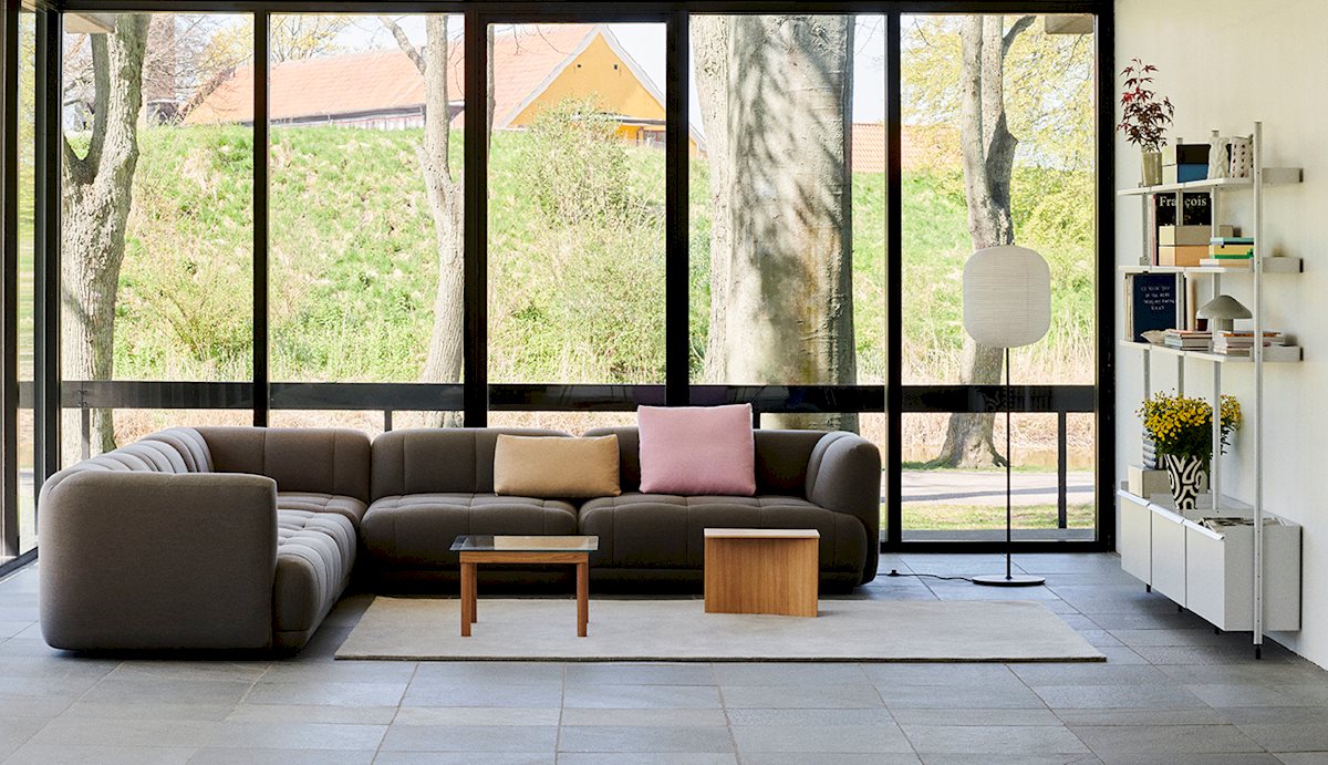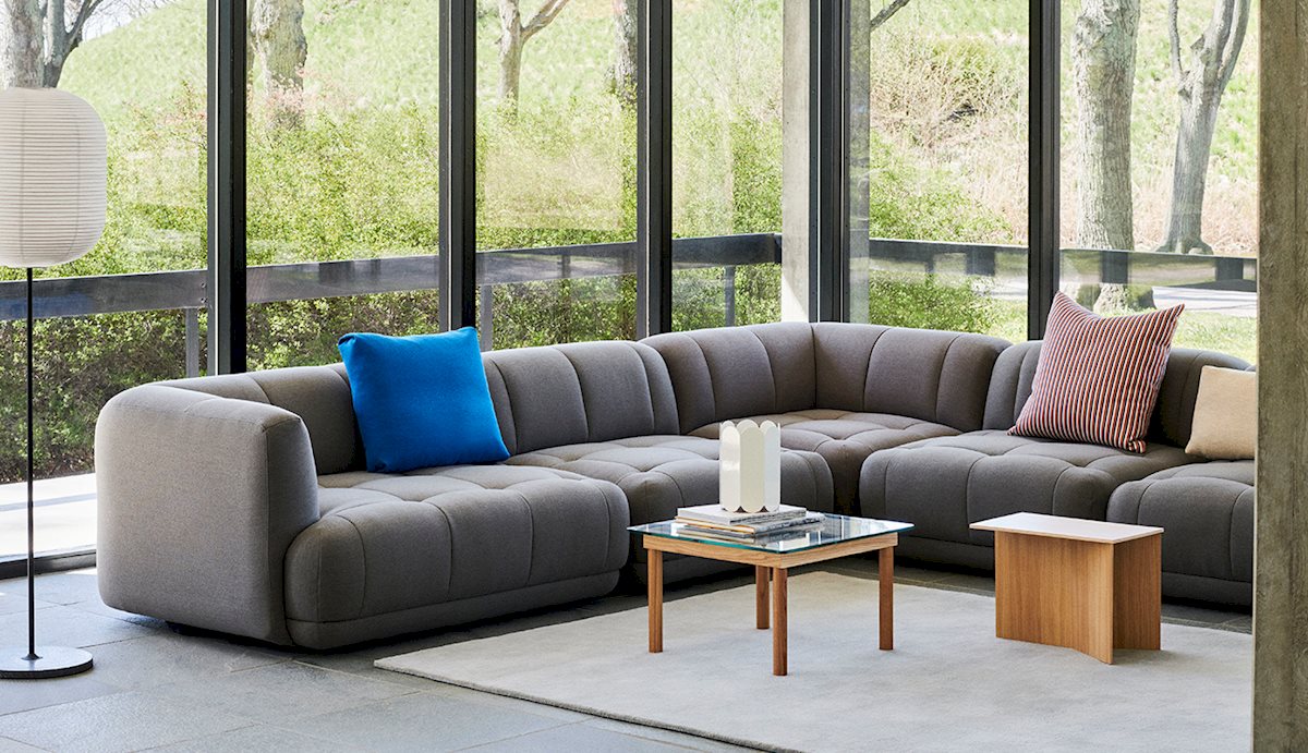 The Quilton Collection from HAY is a ‘quilted landscape sofa system,’ a versatile platform for living, working, socializing, and relaxing. The Quilton Sofa provides the flexibility of a modular sofa system with generous dimensions and sculpted forms. Its blind-tufted quilted upholstery adds a geometric visual reminiscent of the standard Chesterfield-style sofa while enhancing the comfort of the foam and wadding seats.