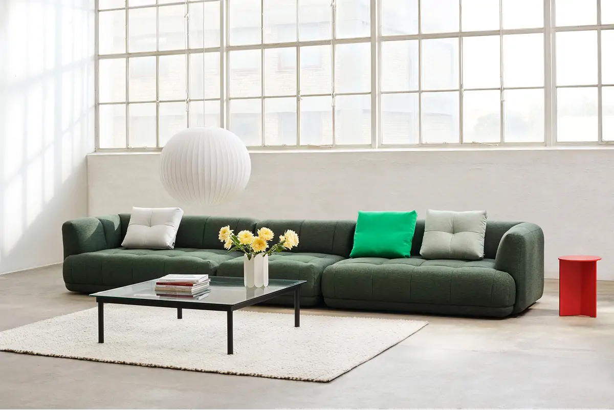 Designed by Doshi Levien, the Quilton Cushion features the same quilted design as the rest of the modular Quilton sofa series, adding softness, comfort and colour to the sofa. The inside is filled with fibre balls made of 100% recycled post-consumer polyester and the outer cover is available in a variety of fabric options. Contrasting colours and textiles can be mixed to create an individual look for your sofa.