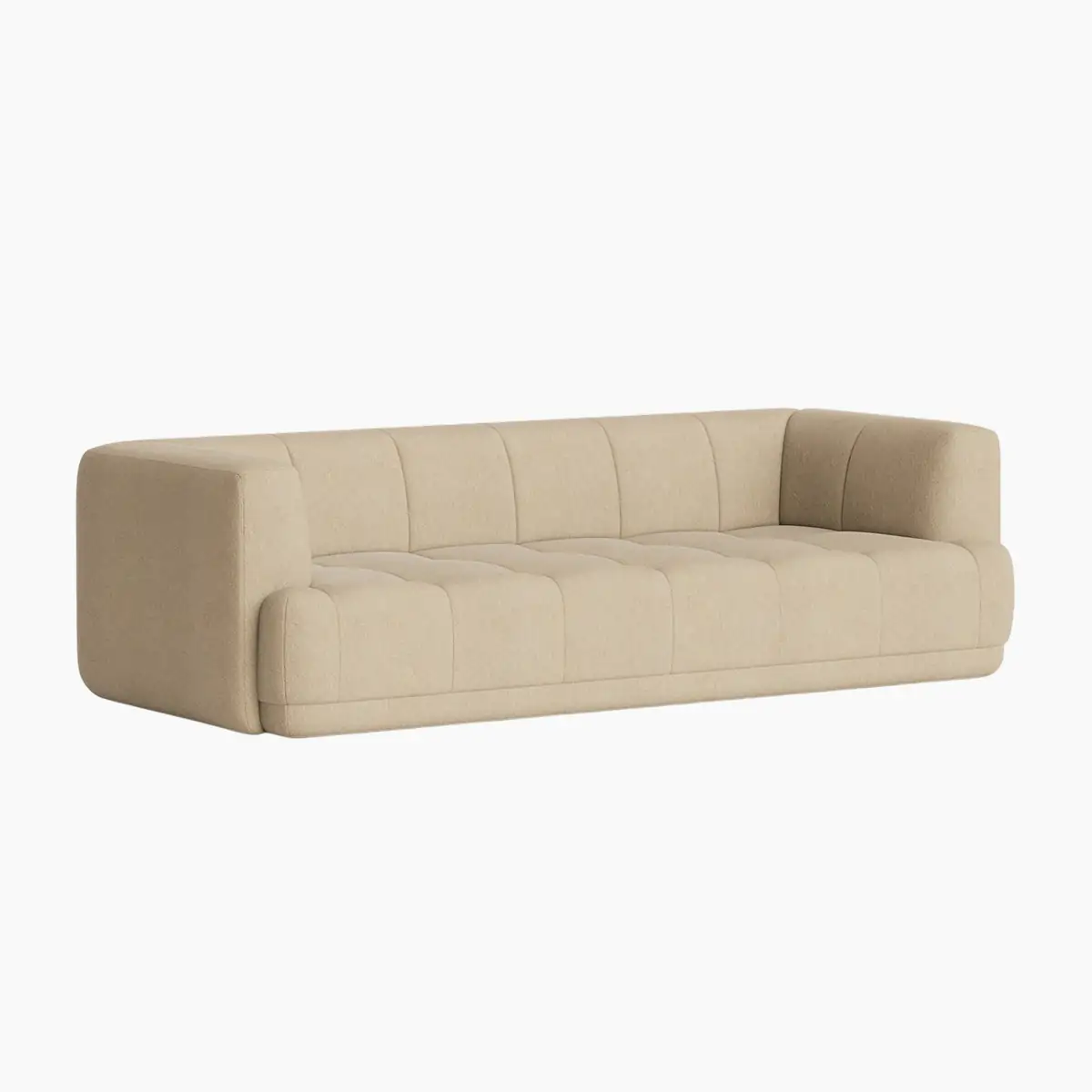 The Quilton Collection from HAY is a ‘quilted landscape sofa system,’ a versatile platform for living, working, socializing, and relaxing. The Quilton Sofa provides the flexibility of a modular sofa system with generous dimensions and sculpted forms. Its blind-tufted quilted upholstery adds a geometric visual reminiscent of the standard Chesterfield-style sofa while enhancing the comfort of the foam and wadding seats.