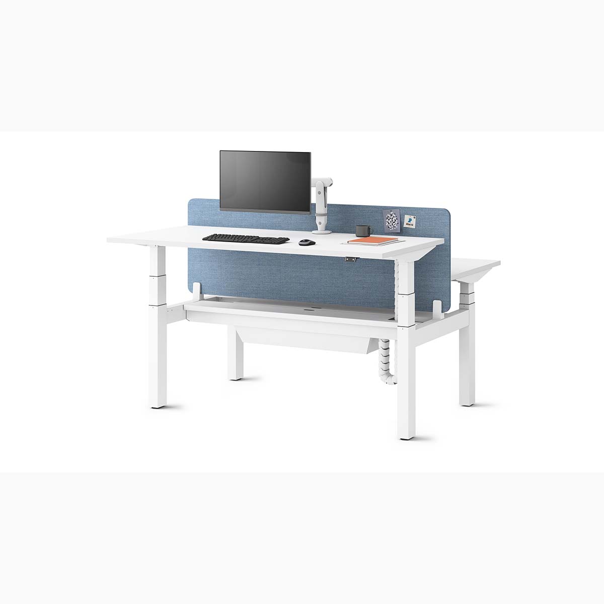 The Ratio height-adjustable desk enables a smooth transition between sitting and standing. Users can vary their posture to find the right balance between sitting and standing throughout the day. Ratio can be specified as single desks or in unlimited clusters, working with our other desking solutions to complete any floor plate.