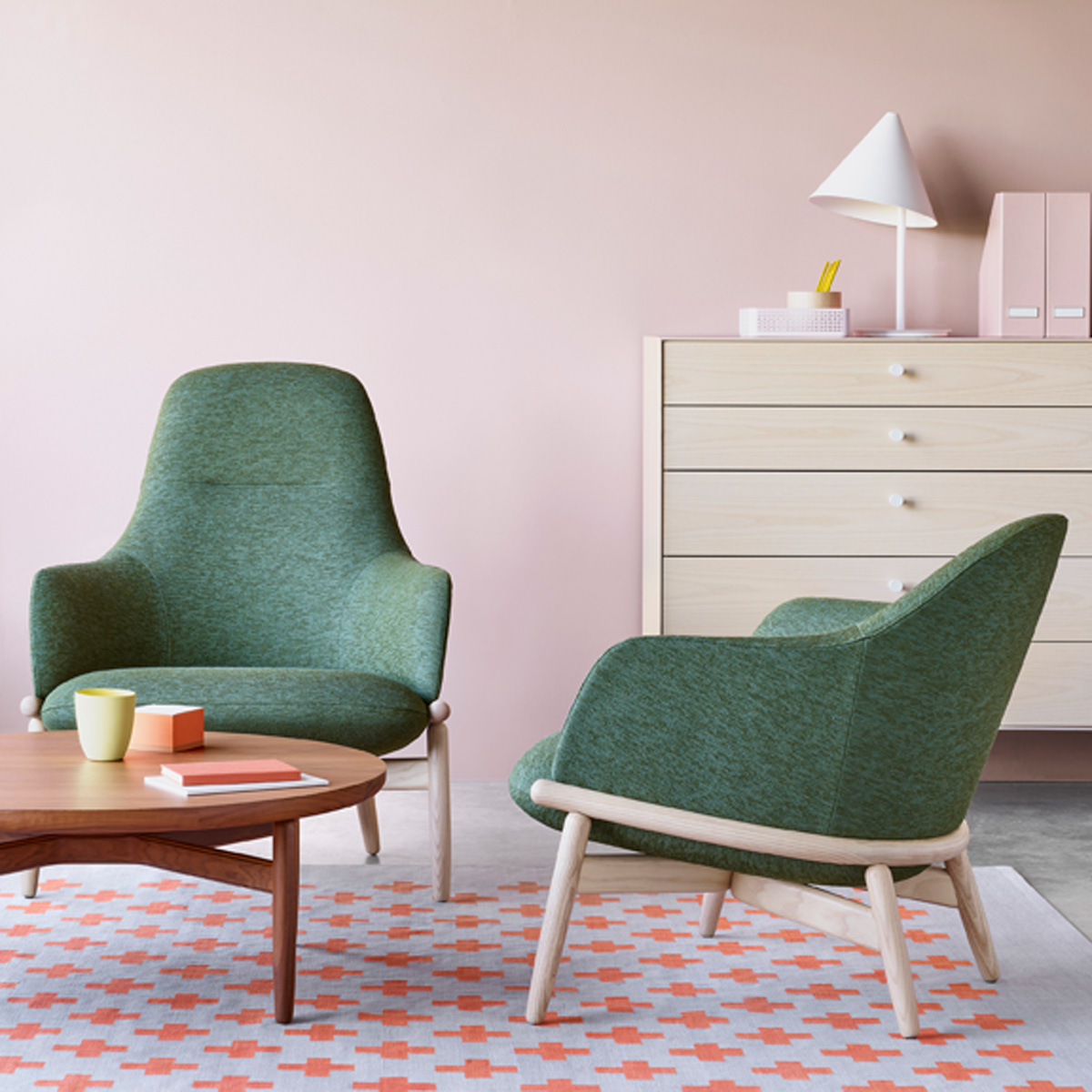 Low and open, the mid-back is designed to encourage conversation. The high-back offers a bit more support, while the wing-back goes further, almost wrapping the sitter to encourage focus and limit peripheral distractions.