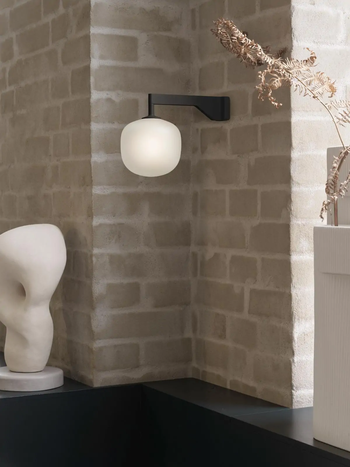The Rime Wall Lamp brings an elegant perspective to the glass light through its semi-transparent glass that has been sandblasted for a refined expression. The design features a characteristic form, inspired by the shape of acorns, complemented by the geometric shape of its arm. The Rime Wall Lamp features a dimmability light source, allowing for its user to adjust the light intensity to their individual needs, be it in the home, a restaurant or a hotel room.