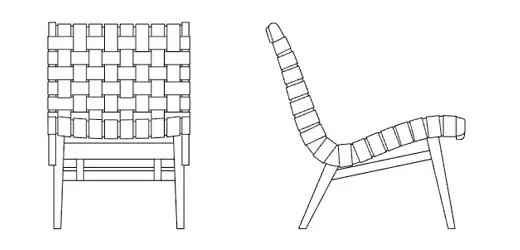 With this in mind, Risom designed a complete line of simple modern chairs, tables and storage that could be made locally, with materials not limited by wartime supply restrictions. Risom’s approach was perfectly suited for the challenge: “Design is a creative effort to successfully solve problems; ‘good design,’ therefore, is a ‘good solution’ which must satisfy the many requirements.” The resulting furniture, which Risom described as “very basic, very simple, inexpensive, easy to make” was made from offcast wood and discarded nylon webbing from parachute factories.
