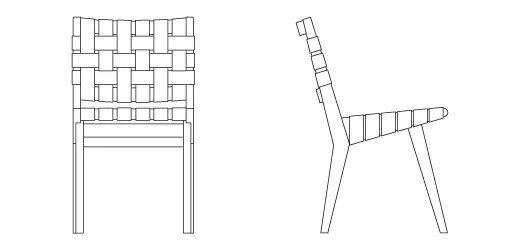 With this in mind, Risom designed a complete line of simple modern chairs, tables and storage that could be made locally, with materials not limited by wartime supply restrictions. Risom’s approach was perfectly suited for the challenge: “Design is a creative effort to successfully solve problems; ‘good design,’ therefore, is a ‘good solution’ which must satisfy the many requirements.” The resulting furniture, which Risom described as “very basic, very simple, inexpensive, easy to make” was made from offcast wood and discarded nylon webbing from parachute factories.
