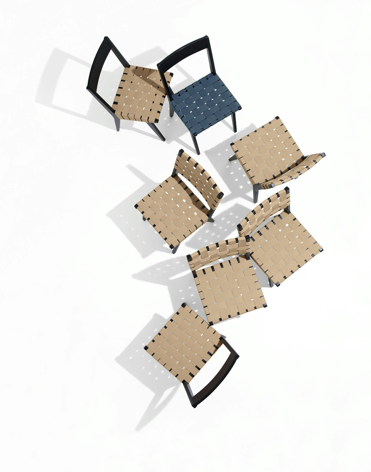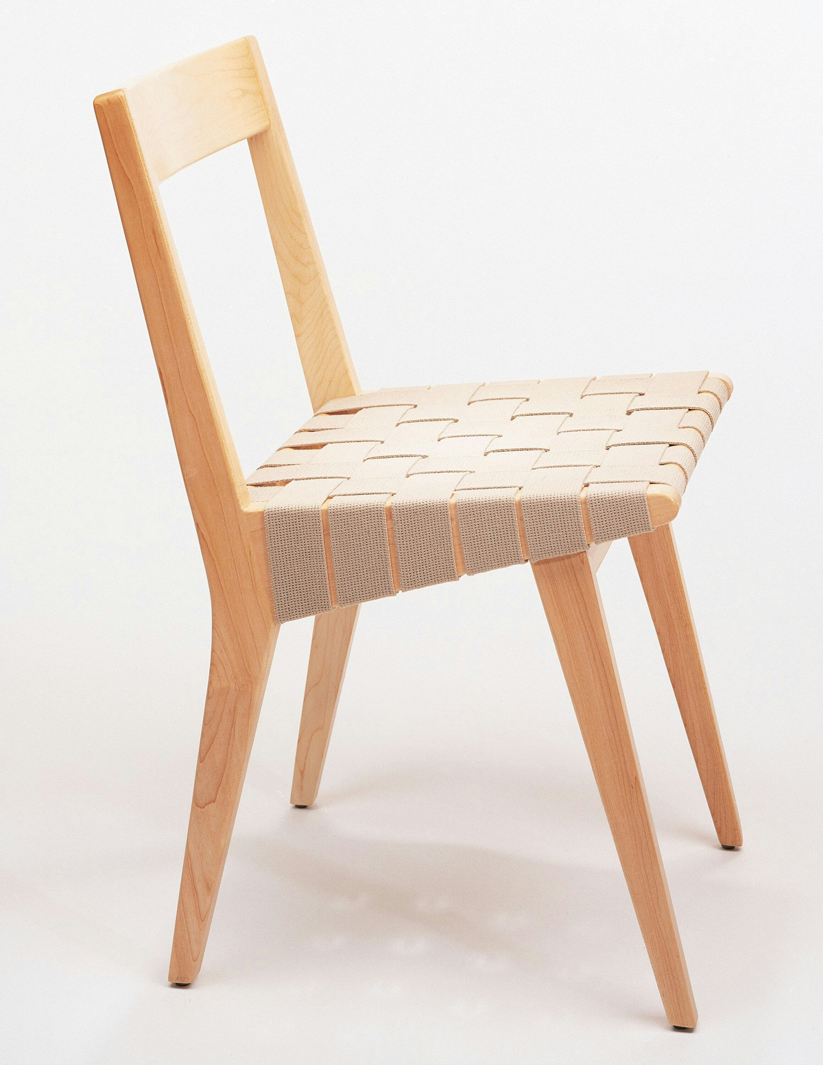 With this in mind, Risom designed a complete line of simple modern chairs, tables and storage that could be made locally, with materials not limited by wartime supply restrictions. Risom’s approach was perfectly suited for the challenge: “Design is a creative effort to successfully solve problems; ‘good design,’ therefore, is a ‘good solution’ which must satisfy the many requirements.” The resulting furniture, which Risom described as “very basic, very simple, inexpensive, easy to make” was made from offcast wood and discarded nylon webbing from parachute factories.