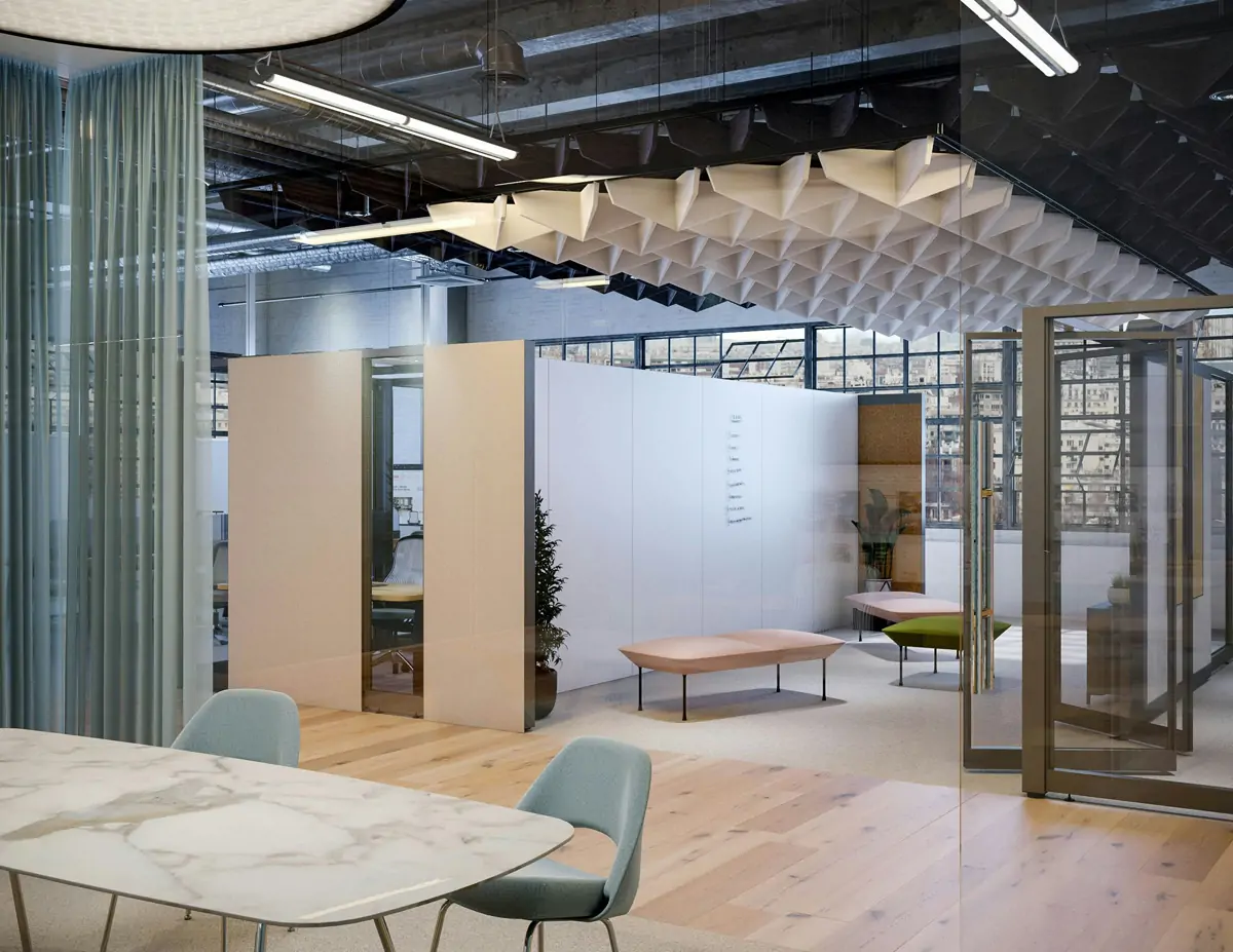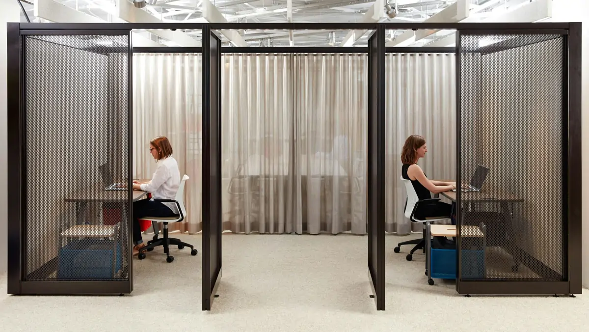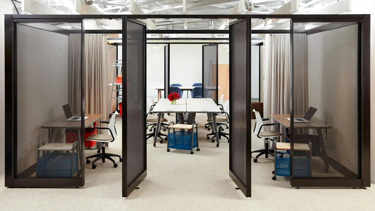 Incorporate accessible privacy that complements the existing floorplan. Enclosures can be planned as individual spaces or as a series of fluid zones. Customizable panels offer varying degrees of visual and acoustic privacy, dampening noise and minimizing distractions.