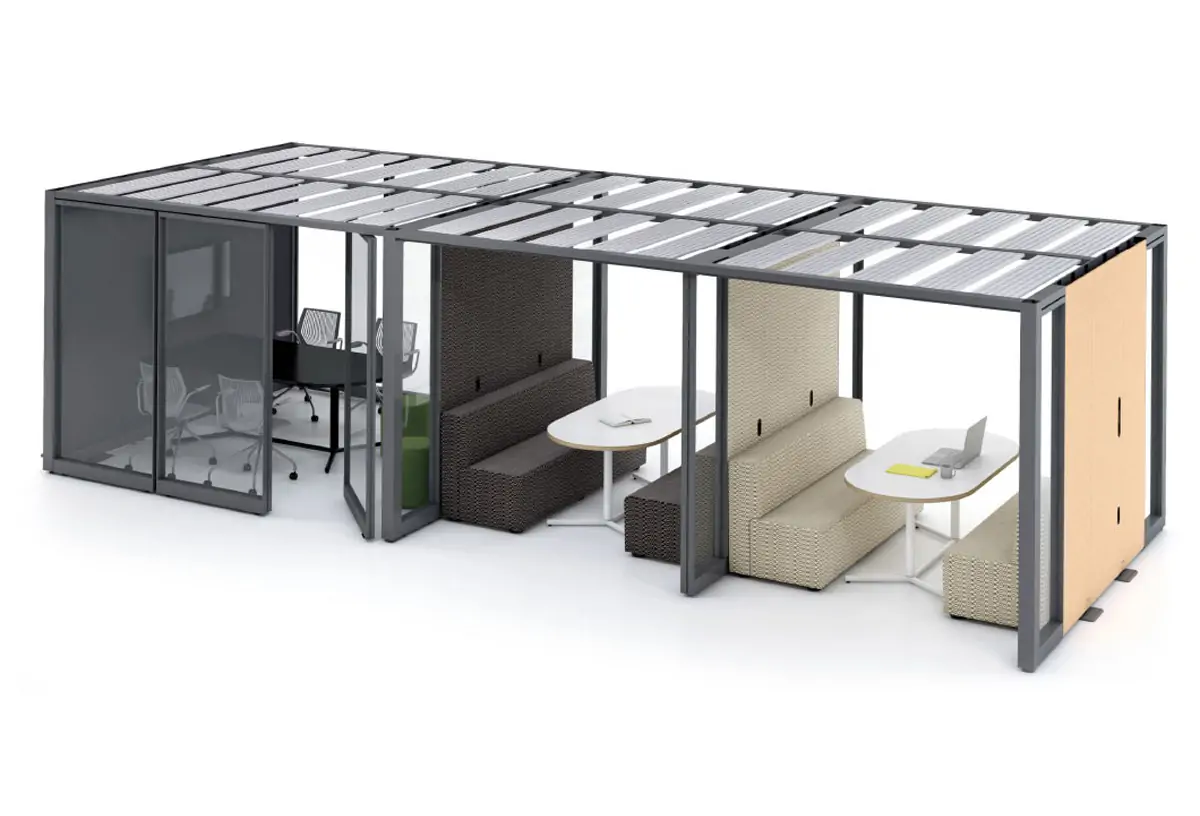 Incorporate accessible privacy that complements the existing floorplan. Enclosures can be planned as individual spaces or as a series of fluid zones. Customizable panels offer varying degrees of visual and acoustic privacy, dampening noise and minimizing distractions.