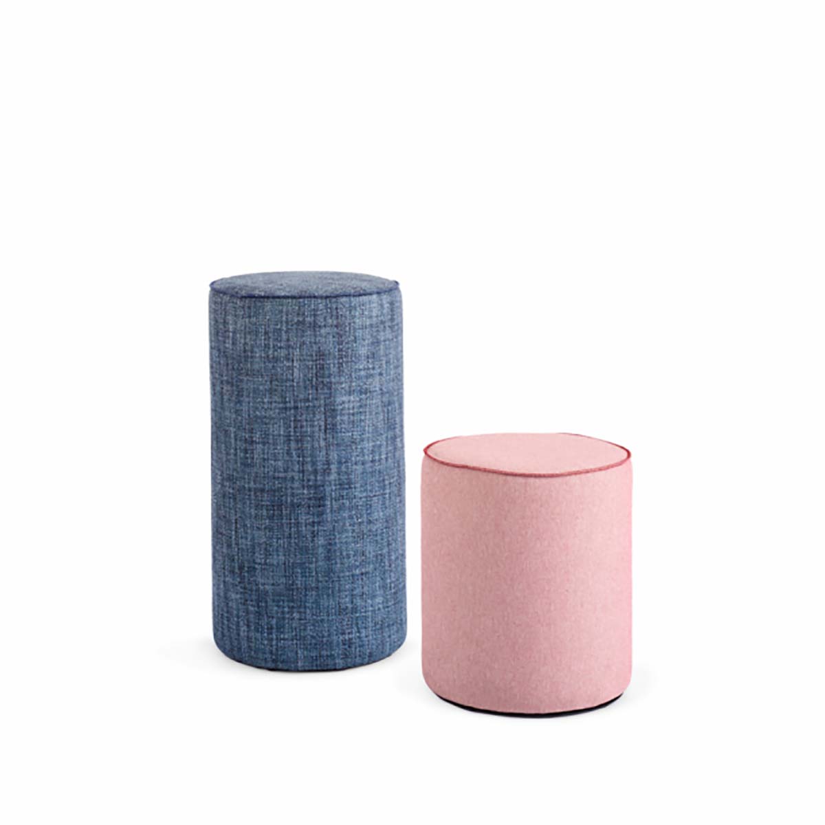 Unscripted upholstered seats bring punctuation to any space with a bit of unexpected fun. The cylinder comes in three sizes for perching at a variety of table heights. The low cube works with lounge or standard-height tables. Both models come with fixed or 360° swivel base and share common finish details with other Unscripted lounge pieces, including pinch pleat seams and optional serged edge stitch detail.