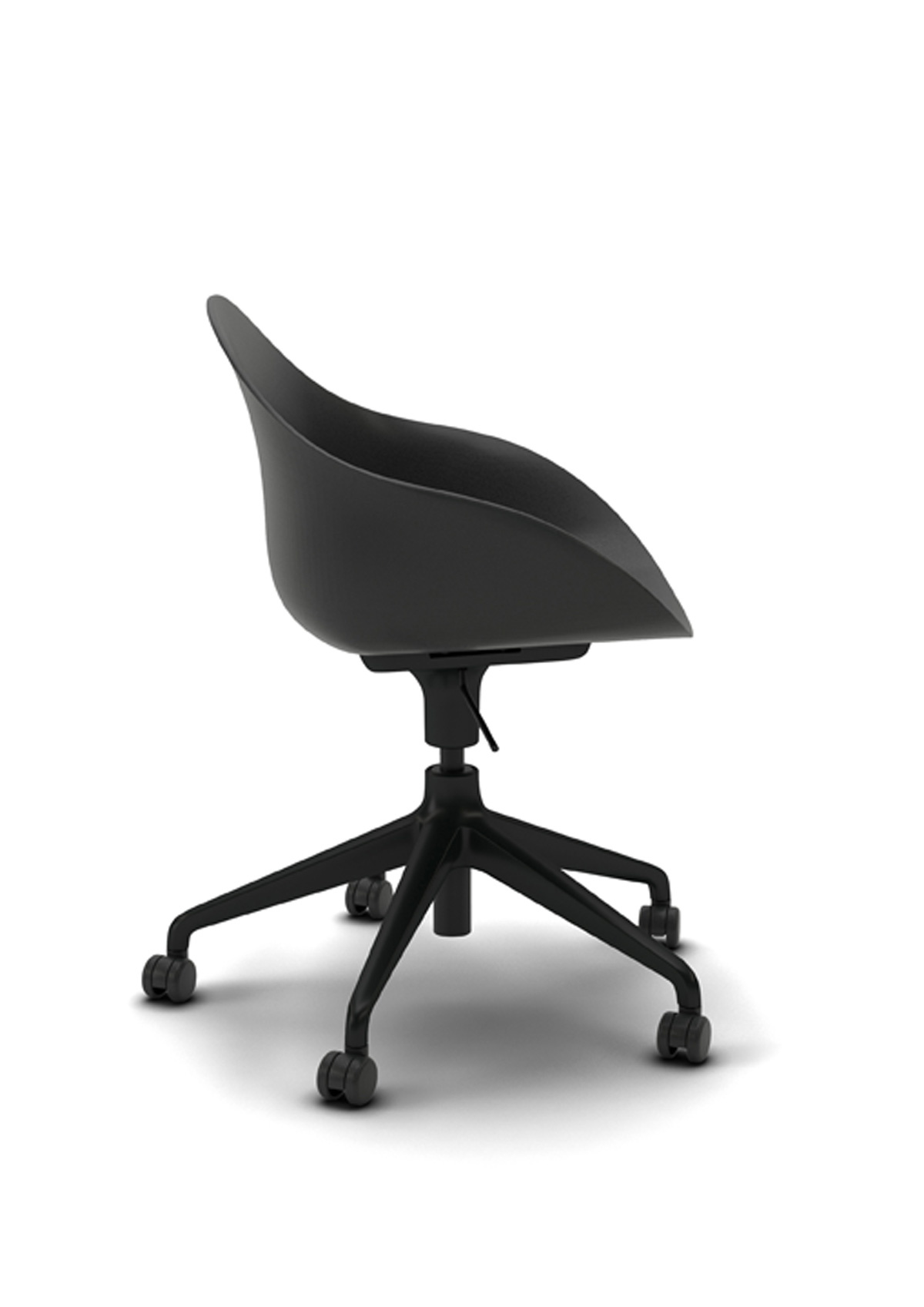 The Ruby Chair from NaughtOne is made from a 100% recyclable polypropylene shell that boasts a curvaceous form intended to respond to the sitter. Exceptionally comfortable and easy to clean, it’s available in a range of color options and various base types and finishes with optional upholstered seat pads.