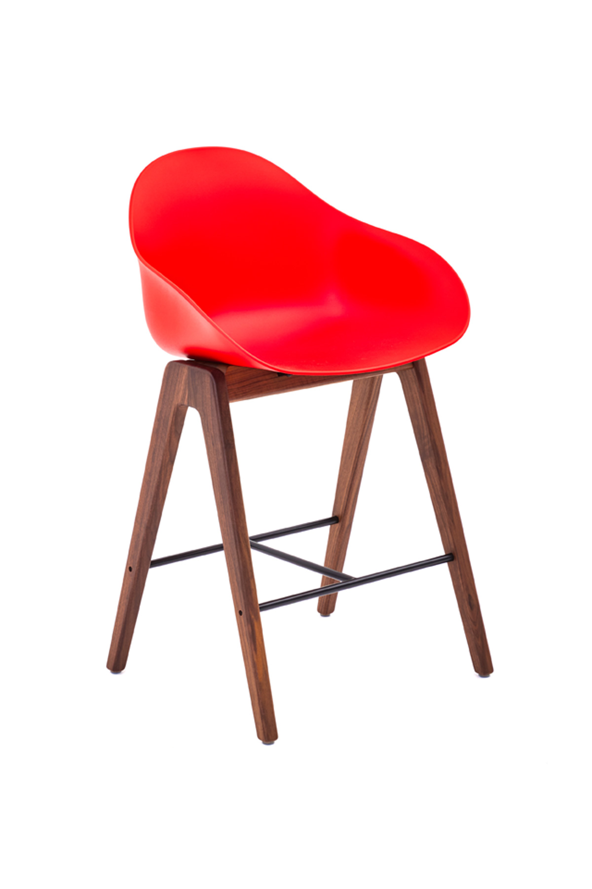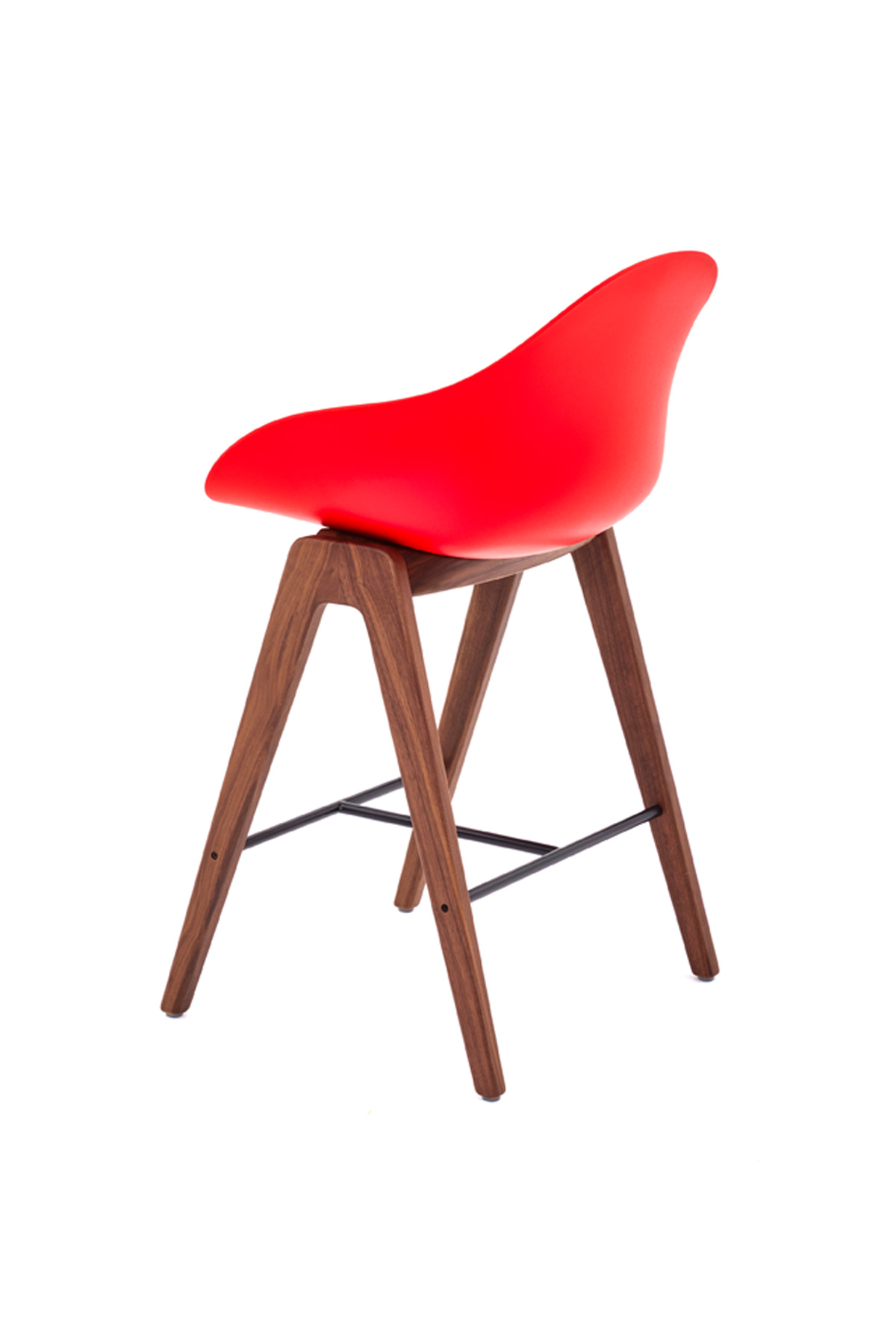 The Ruby Wood Stool from NaughtOne features a 100% recyclable polypropylene shell that boasts a curvaceous form intended to respond to the sitter. Available in bar- and counter-height, the shell sits atop a solid wood base with gently tapered legs. Exceptionally comfortable and easy to clean, Ruby is available in a range of colors with optional upholstered seat pads.