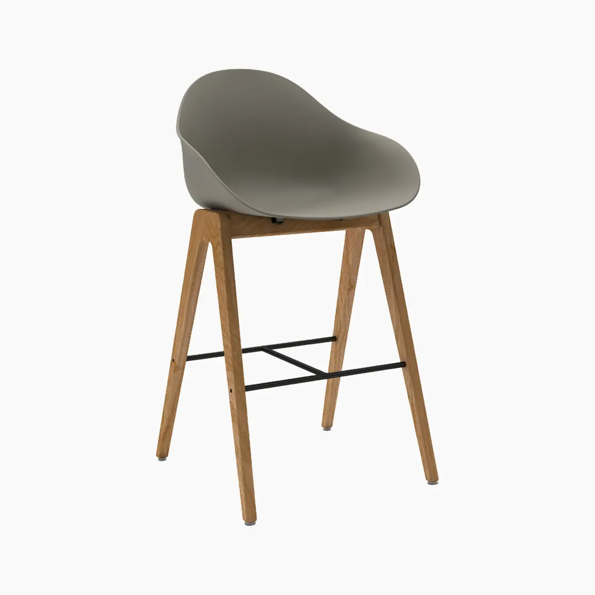 The Ruby Wood Stool from NaughtOne features a 100% recyclable polypropylene shell that boasts a curvaceous form intended to respond to the sitter. Available in bar- and counter-height, the shell sits atop a solid wood base with gently tapered legs. Exceptionally comfortable and easy to clean, Ruby is available in a range of colors with optional upholstered seat pads.