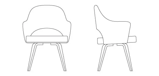The Saarinen Executive Chair, designed by Eero Saarinen for Knoll, is recognized for its enduring appeal and stately design. Its sculpted back and cushioned seat provide ample support and can be configured with a range of fabrics, finishes, and leg options for a customized look. Whether on its own or around a Saarinen Table, this classic design fits well in conference rooms, offices, and hospitality settings.