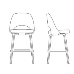 The Saarinen Executive Stool, designed by Eero Saarinen for Knoll, is an updated stool version of this enduringly appealing design. Its sculpted back and cushioned seat provide ample support and can be configured with a range of fabrics, finishes, and leg options for a customized look that fits well in lounges and hospitality settings.