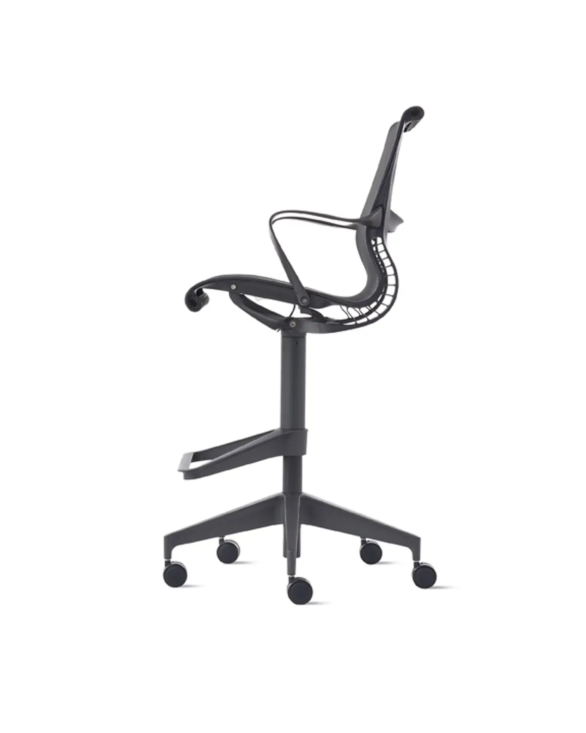 The spine works in concert with the breathable, temperature-neutral and durable Intercept suspension – originally a Cosm innovation – for seamless comfort wherever you are. The upholstered Setu features a C-Layer Suspension that works with a variety of textiles, adding a degree of structural support to the fabric.