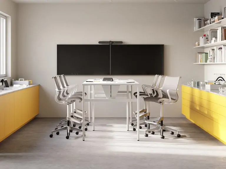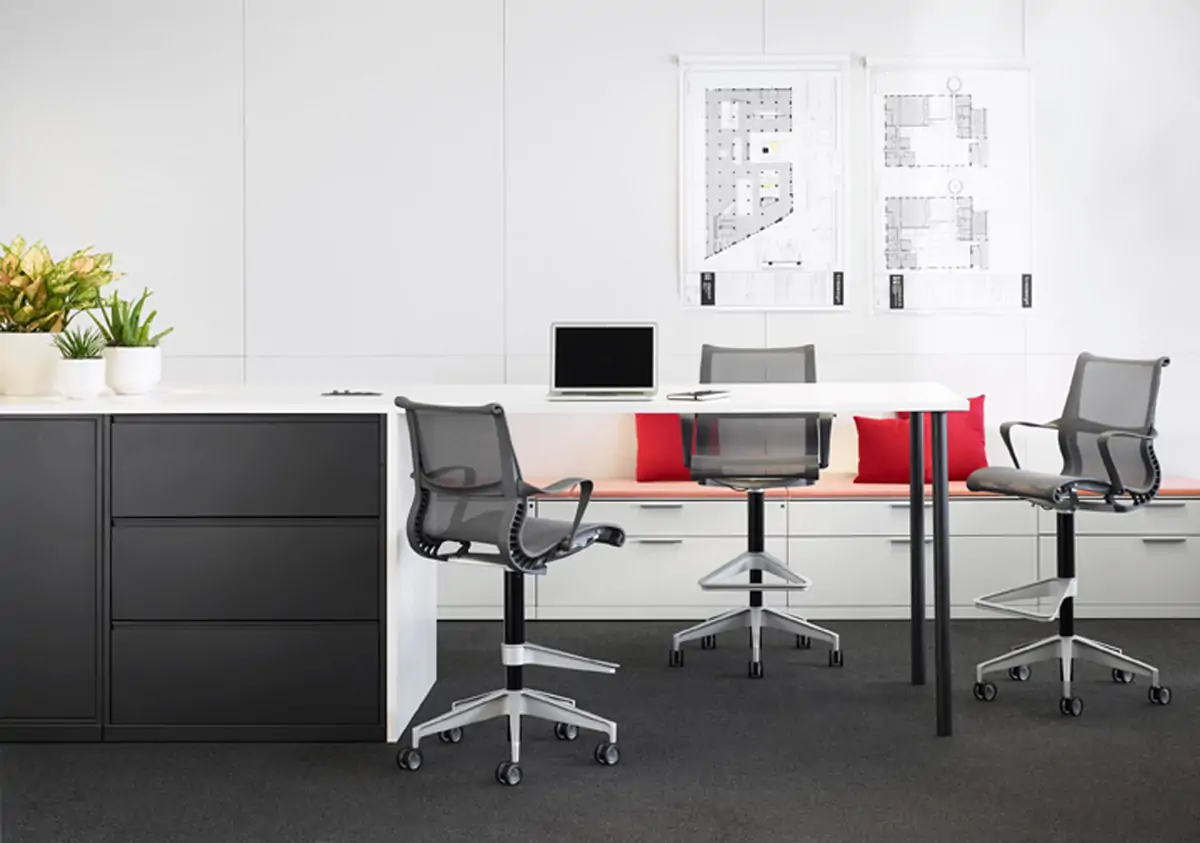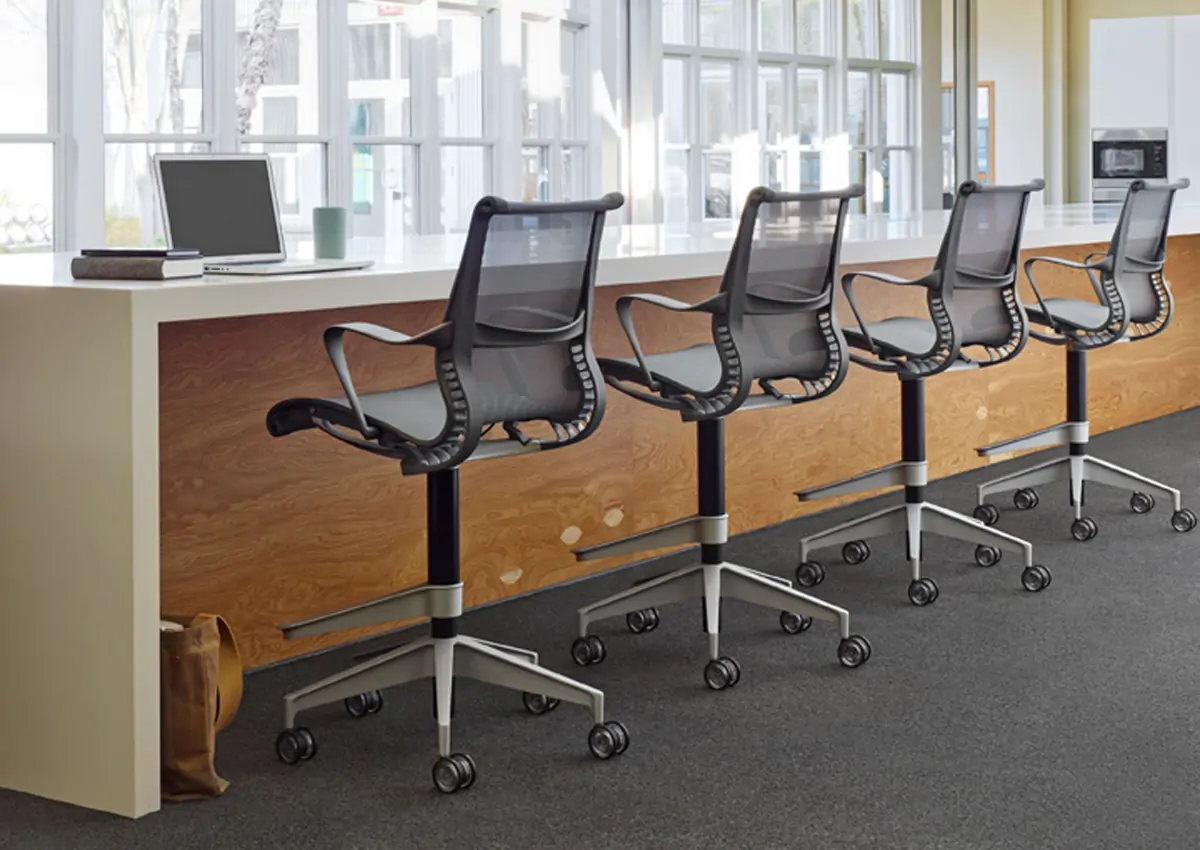 Designed for instant comfort, the Setu Stool from Herman Miller features a simple yet hardworking office stool that’s simultaneously light, airy, and durable. Material innovation is at the core of the Setu—a Kinematic Spine bends and flexes with every movement and a one-piece breathable, pliable seat and back adapts to natural body movements, no adjustments necessary.