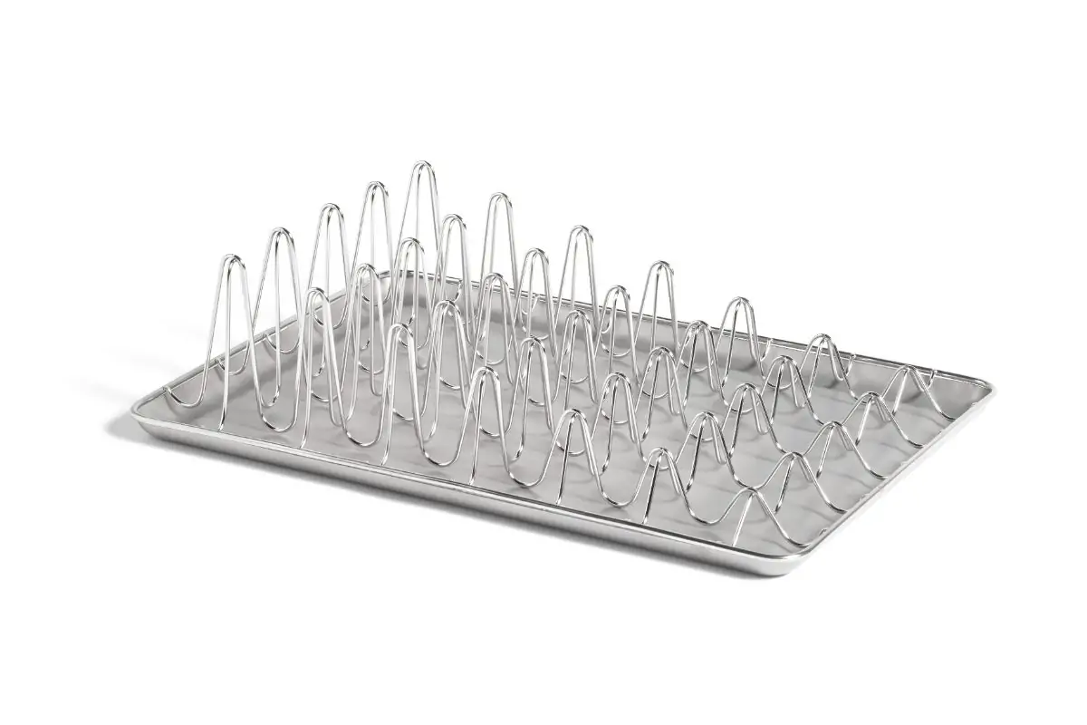 Leon Ransmeier’s Shortwave Dish Rack uses undulating lines to create a strong design language that serves a functional purpose too. This stainless steel dish rack comes with a tray made to catch any excess water.
