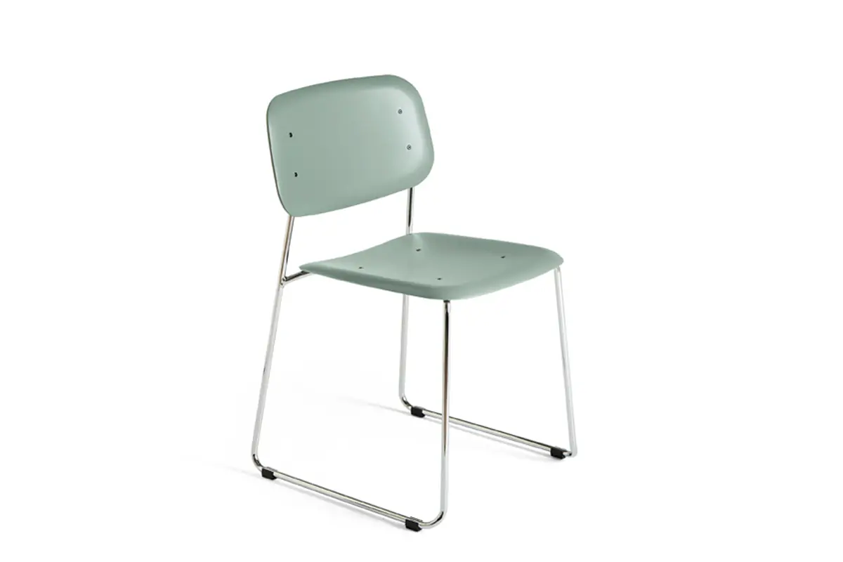 Iskos-Berlin’s Soft Edge series features an organically shaped seat and back, blending strong curves with extreme lightness to create a minimalistic design that optimises human-centric comfort. With its plastic (PP) seat and back in a variety of colours and steel-sled base, the Soft Edge 55 Chair offers both uncluttered aesthetics, stability, and functionality. Its strength and stackability make it ideal for using in private, public, and contract environments – from homes to corporate spaces and cafés. Also available with an upholstered seat in a wide range of fabric options.