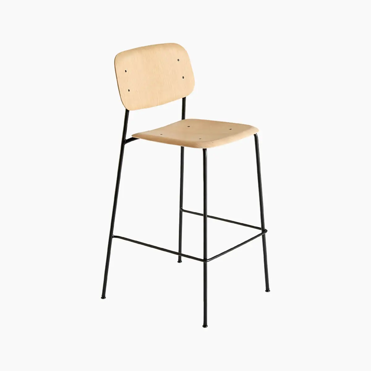 Iskos-Berlin’s Soft Edge series features an organically shaped seat and back, blending strong curves with extreme lightness to create a minimalistic design that optimises human-centric comfort. Featuring a wooden seat and back in a variety of finishes, the Soft Edge 90 Bar Stool has long steel legs that enhance the minimalistic aesthetics and create a feeling of lightness, while the low, supportive backrest enhances the bar stool’s stability and comfort. Its strength and functionality ensure years of everyday use in a wide range of public and private environments – from corporate spaces and cafés to home environments.